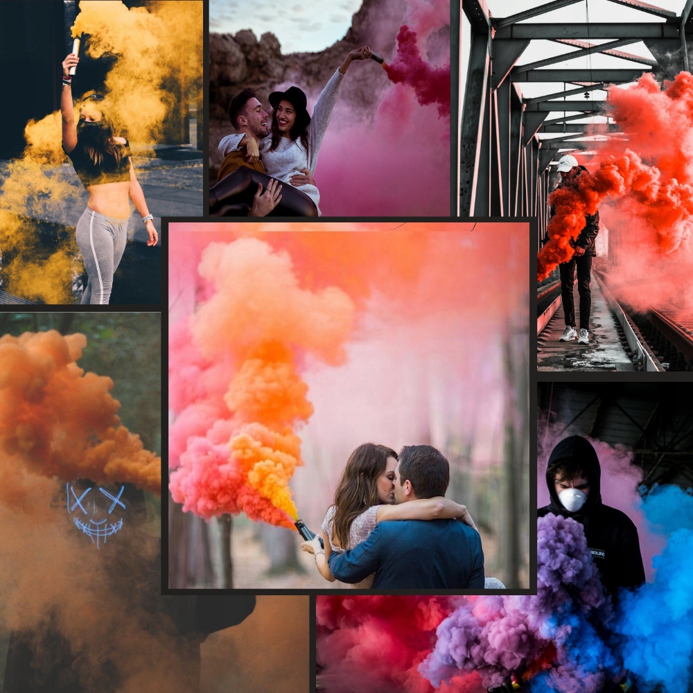 ➡️ Фото- и киносессии: Дымовые свечи придают атмосферу и уникальный визуальный эффект, особенно популярны на свадьбах и портретные сессии или мода.