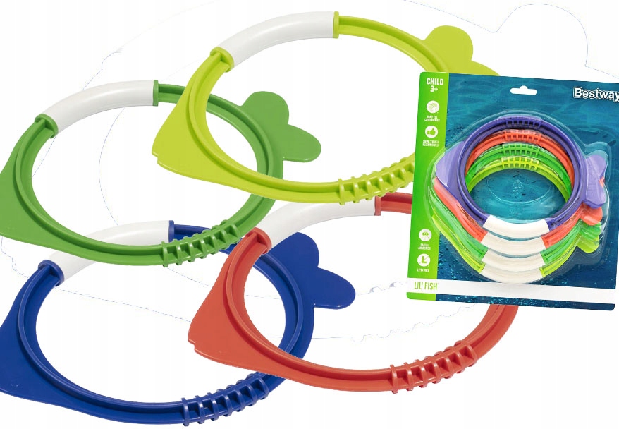 - Набор разноцветных рыбок Bestway — это предложение для каждого юного дайвера поиграть в ловлю рыбы из воды.