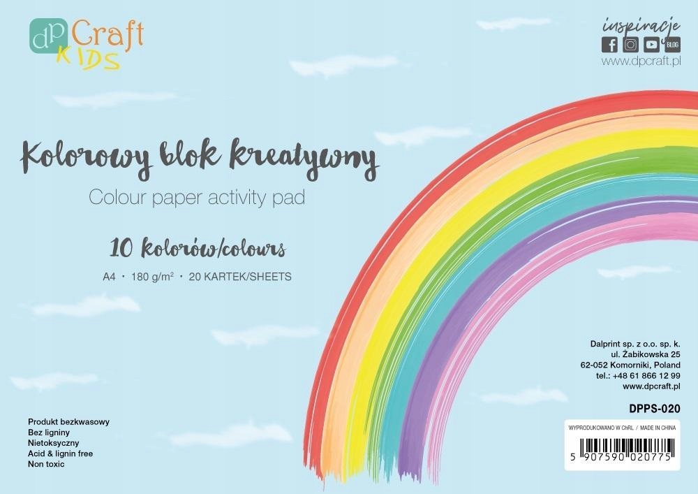 ЦВЕТНОЙ БЛОК А4 20АРК 180Г 10 ЦВЕТОВ, ДАЛЬПРИНТ