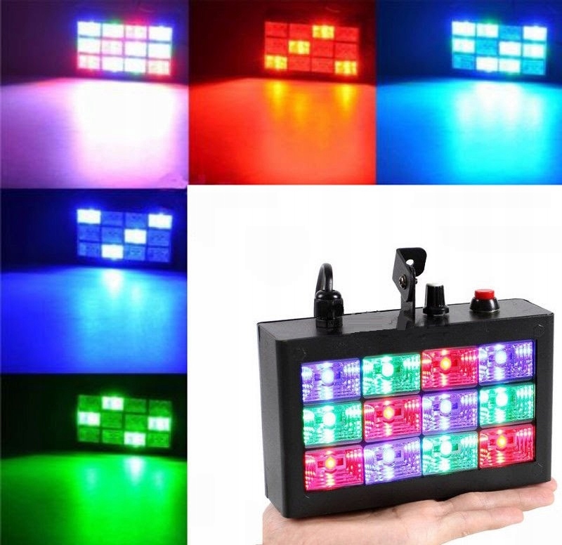ЦВЕТНОЙ СТРОБЕСКОП DISCO RGB СВЕТ ДИСКОТЕЧНЫЙ 12 СВЕТОДИОДНЫХ ЗВУКОВЫХ ДАТЧИКОВ