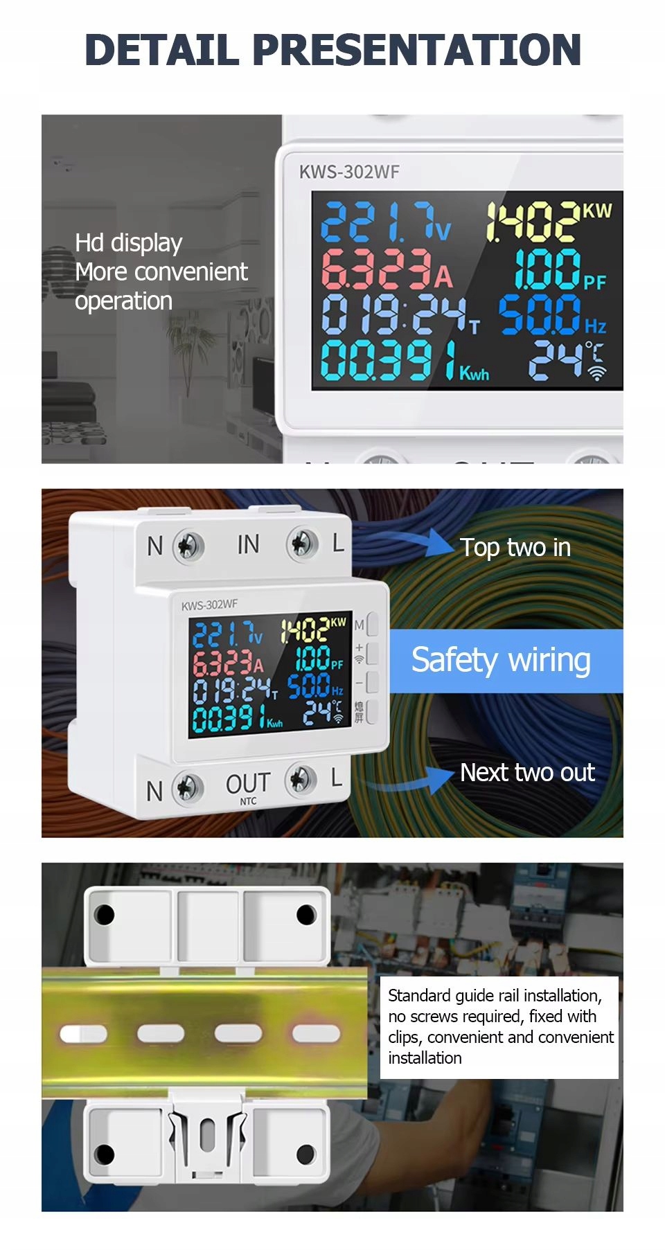 Этот энергетический счетчик 2p имеет более высокий интерфейс разрешения, более точный дисплей данных, более удобную работу, более безопасное потребление электроэнергии. Напряжение, электричество, мощность, время, электричество, температура, частота и фактор мощности 8 W1, удобный для пользователей для понимания использования электроэнергии, реализуйте визуализацию потребления электроэнергии. Стандартная установка руководства, подходящая для квартир, компаний, торговых центров, отелей, семейных домов и так далее.