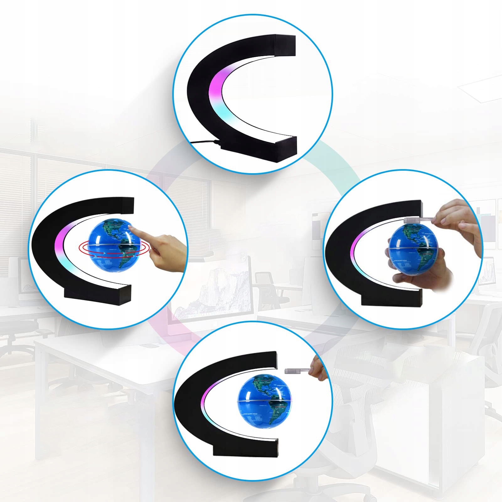 ЦВЕТНАЯ СВЕТОДИОДНАЯ ЛЕВИТАЦИОННАЯ НАСТОЛЬНАЯ ЛАМПА В СВЕТОДИОДНОМ ГЛОБУСЕ