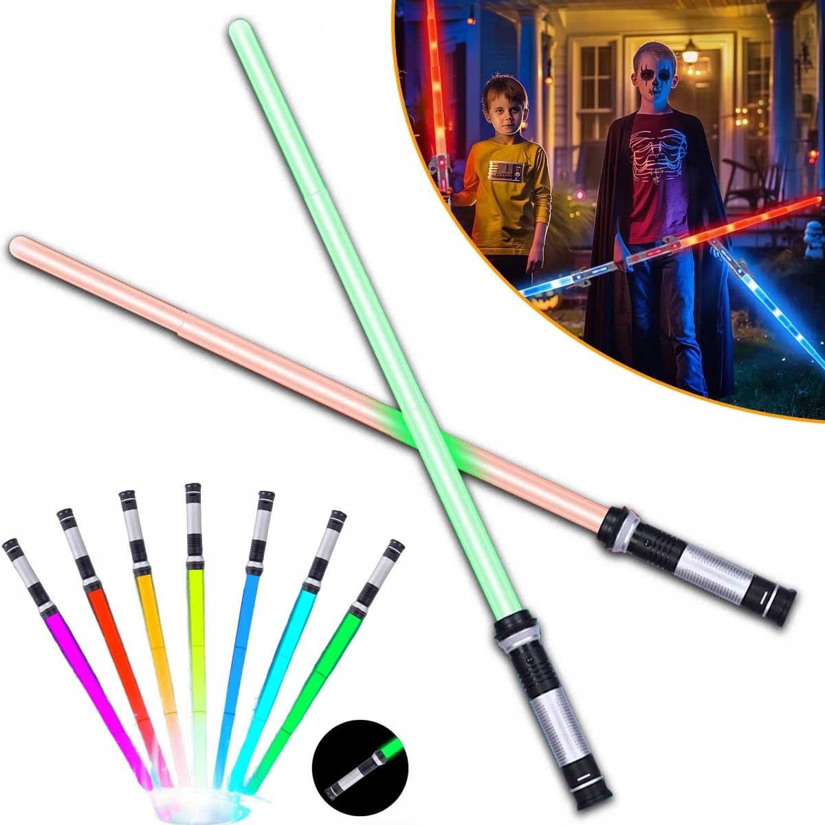 Детский набор световых мечей 2, световой меч 2 в 1, дуэльные световые мечи, двойное лезвие светового меча с 7 цветами и звуковыми эффектами, для костюмов на Хэллоуин, подарки для вечеринок