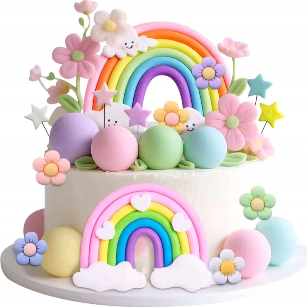 ЦВЕТНОЙ ТОППЕР РАДУГА ОБЛАКО ЗВЕЗДА ЛУНА УКРАШЕНИЕ ТОРТА 107E