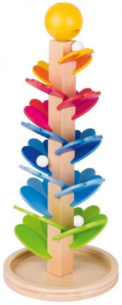 Игрушка изготовлена из качественного дерева, на каждом уровне горки расположены разноцветные листья. Это не только источник развлечения, но и инструмент для развития сенсорных навыков и зрительно-моторной координации ребенка.