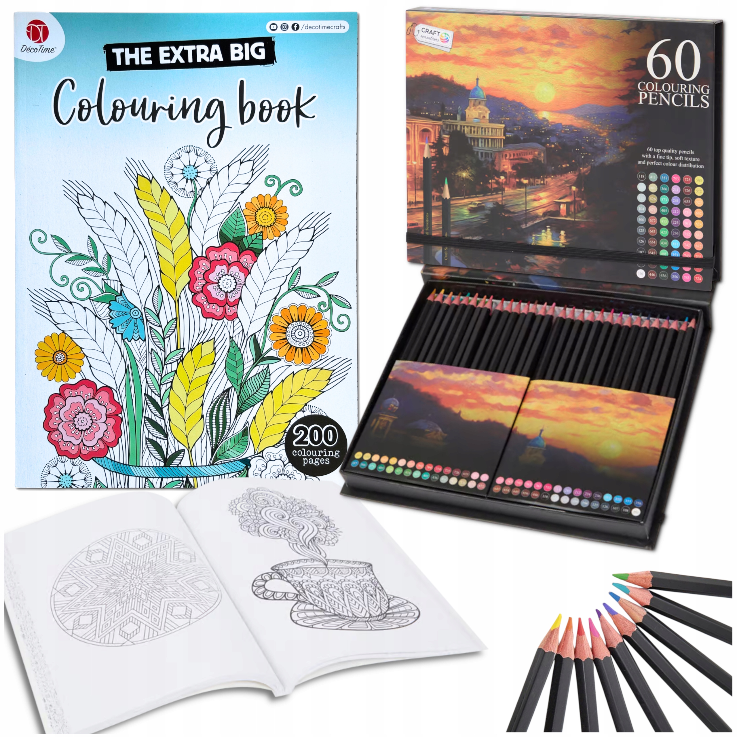 KOLOROWANKA DLA DOROSŁYCH MANDALA x200 + KREDKI OŁÓWKOWE 60 SZT ETUI PIĘKNE