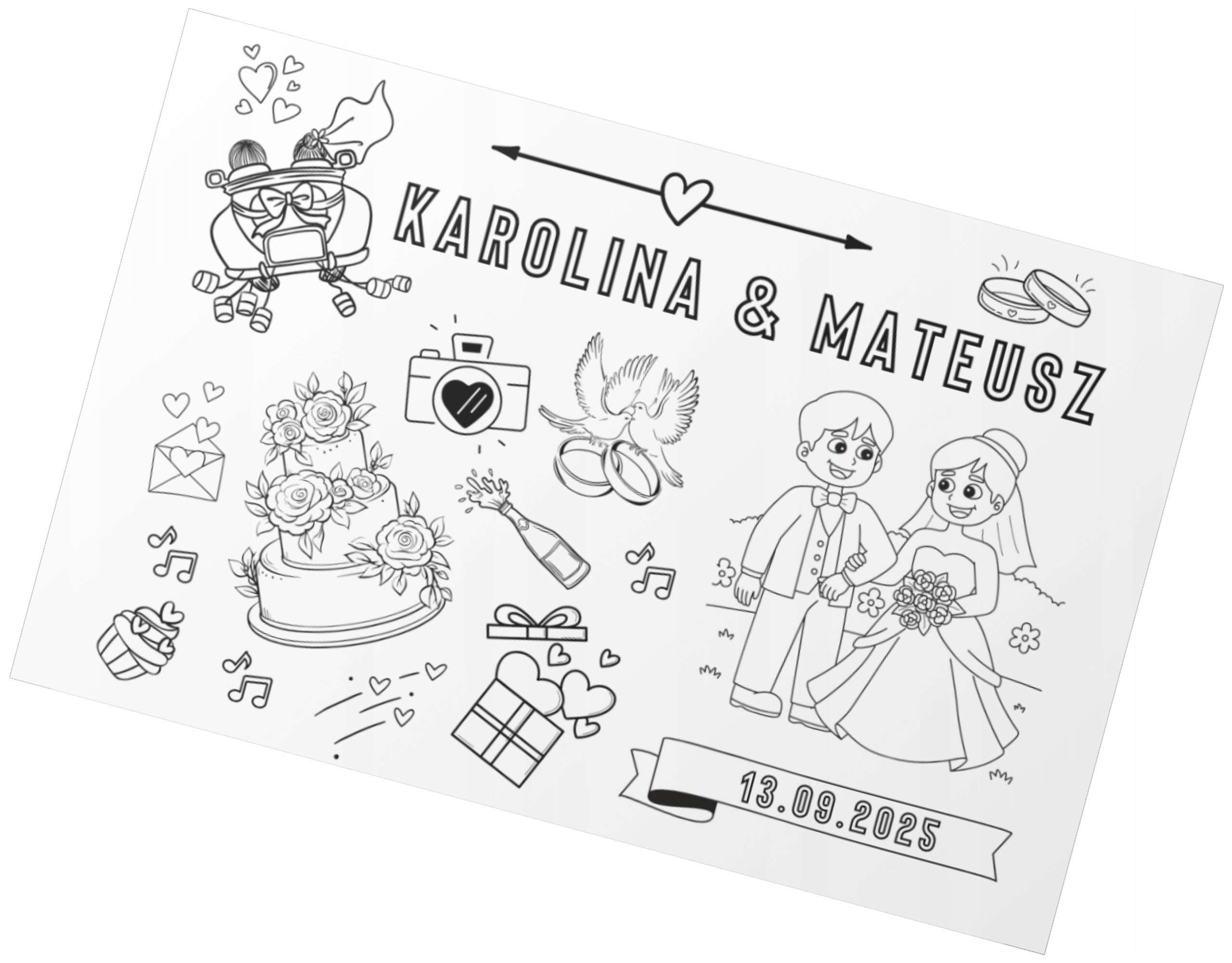 KOLOROWANKA ślubna na wesele DO DRUKU z imionami i datą - Plik PDF