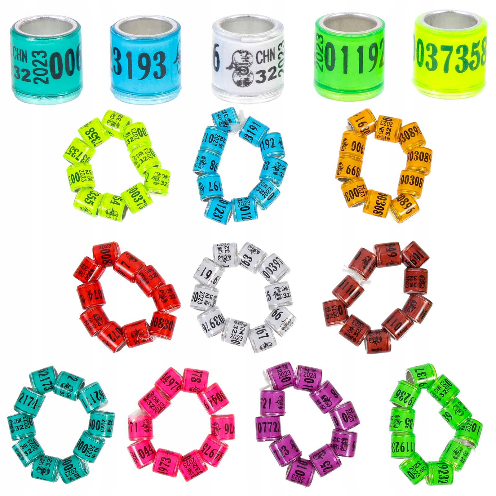 KOLOROWE OBRĄCZKI GOŁĘBI ZNACZNIKI NÓG PTAKÓW (WIELOKOLOROWE)
