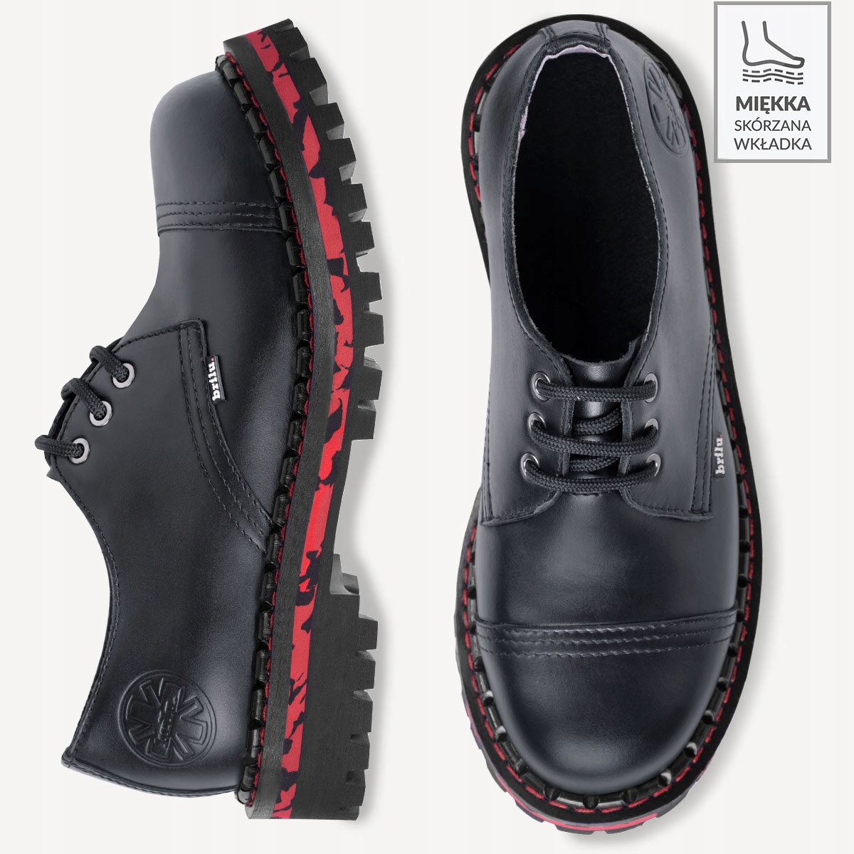 Кожаные ботинки BRILU, низкие черные ботинки на 3 дырочки с красными вставками