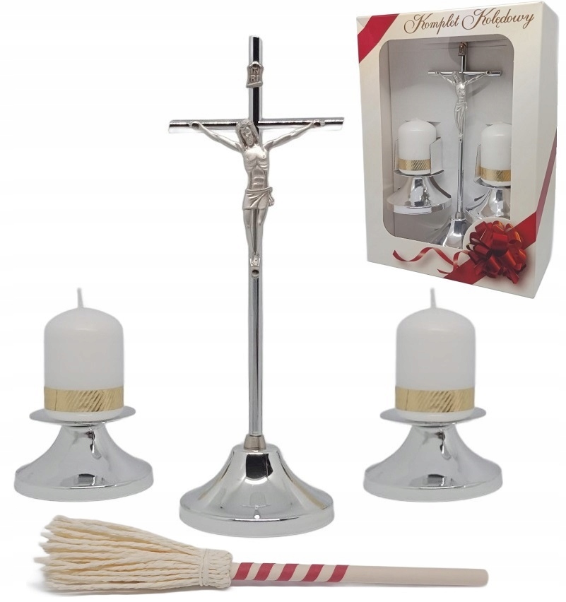 НАБОР CAROL МЕТАЛЛИЧЕСКИЙ КРЕСТ 21 СМ ПОДСВЕЧНИКИ СВЕЧИ С РАСПЫЛИТЕЛЯМИ / ДЛЯ КЭРОЛА