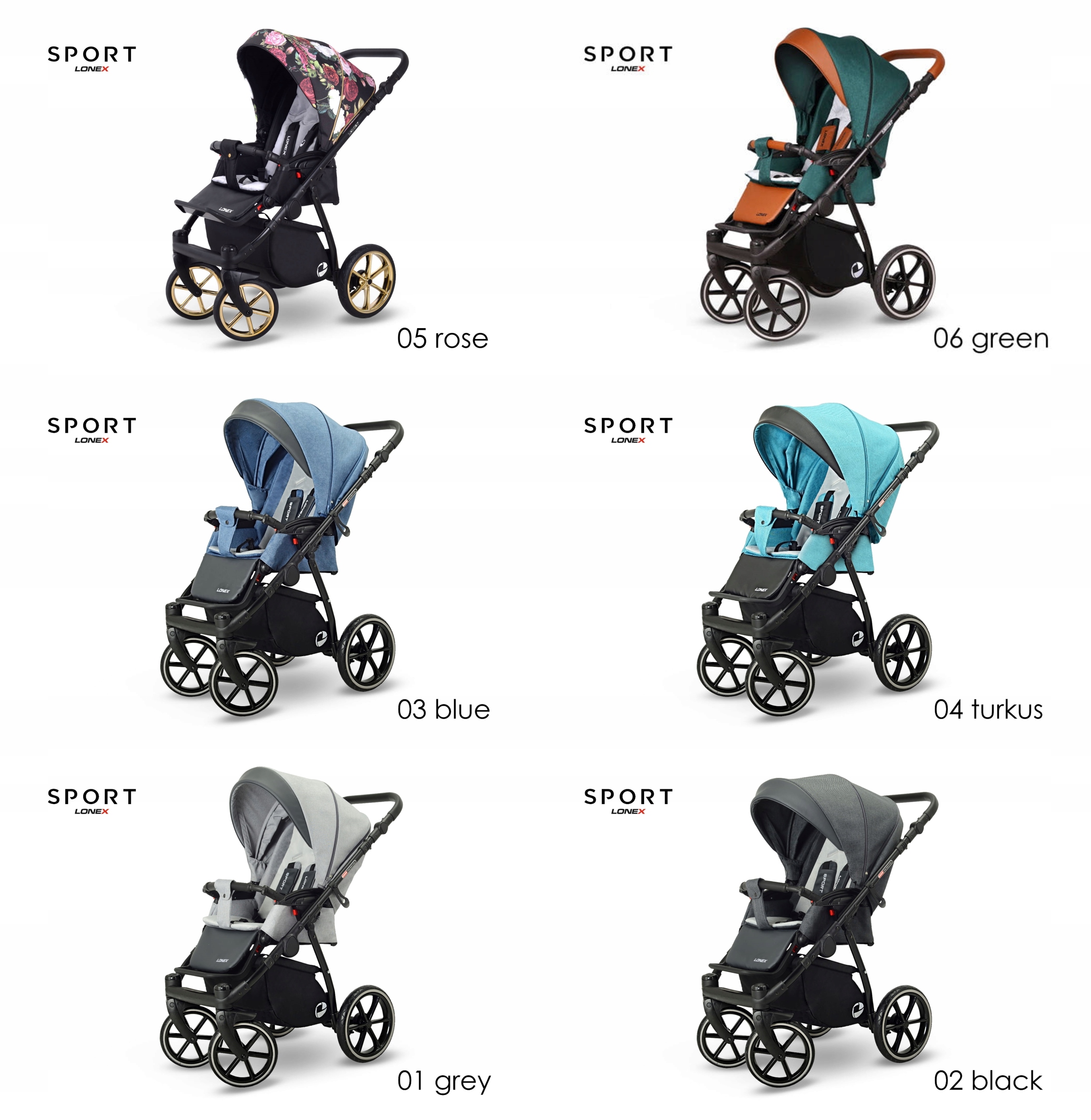 Новая коляска Lonex Deporte. Коляска в полной комплектации. Прочная алюминиевая рама, гелевые колеса и удобное сиденье со вставкой, обеспечивающей достаточную циркуляцию воздуха. Хлопок высочайшего качества с фурнитурой из экокожи классических ярких цветов.