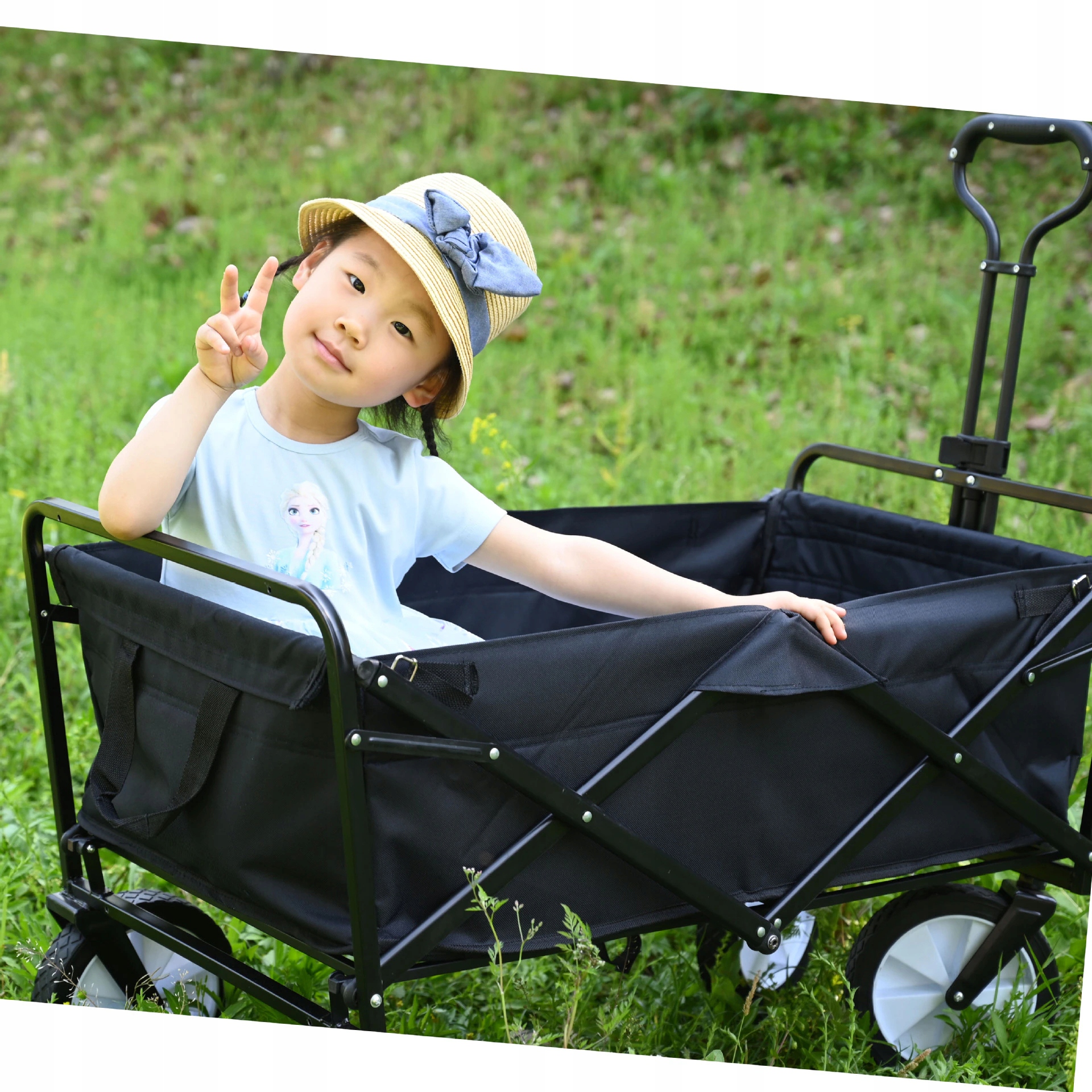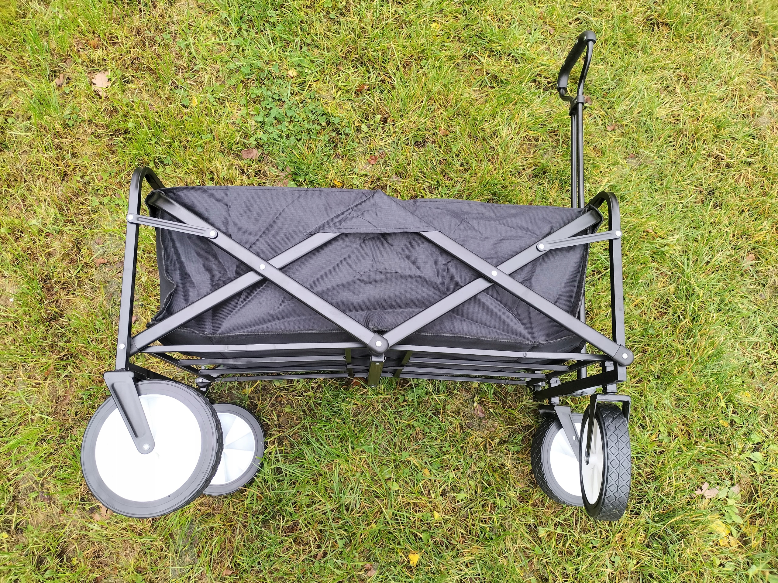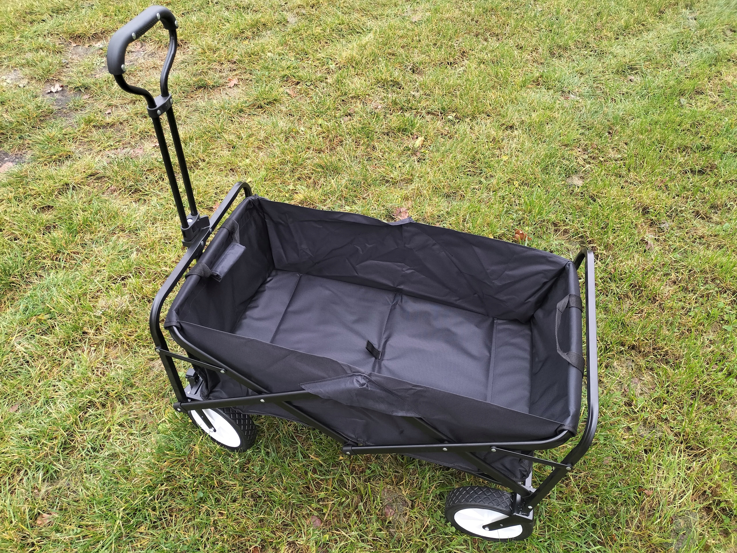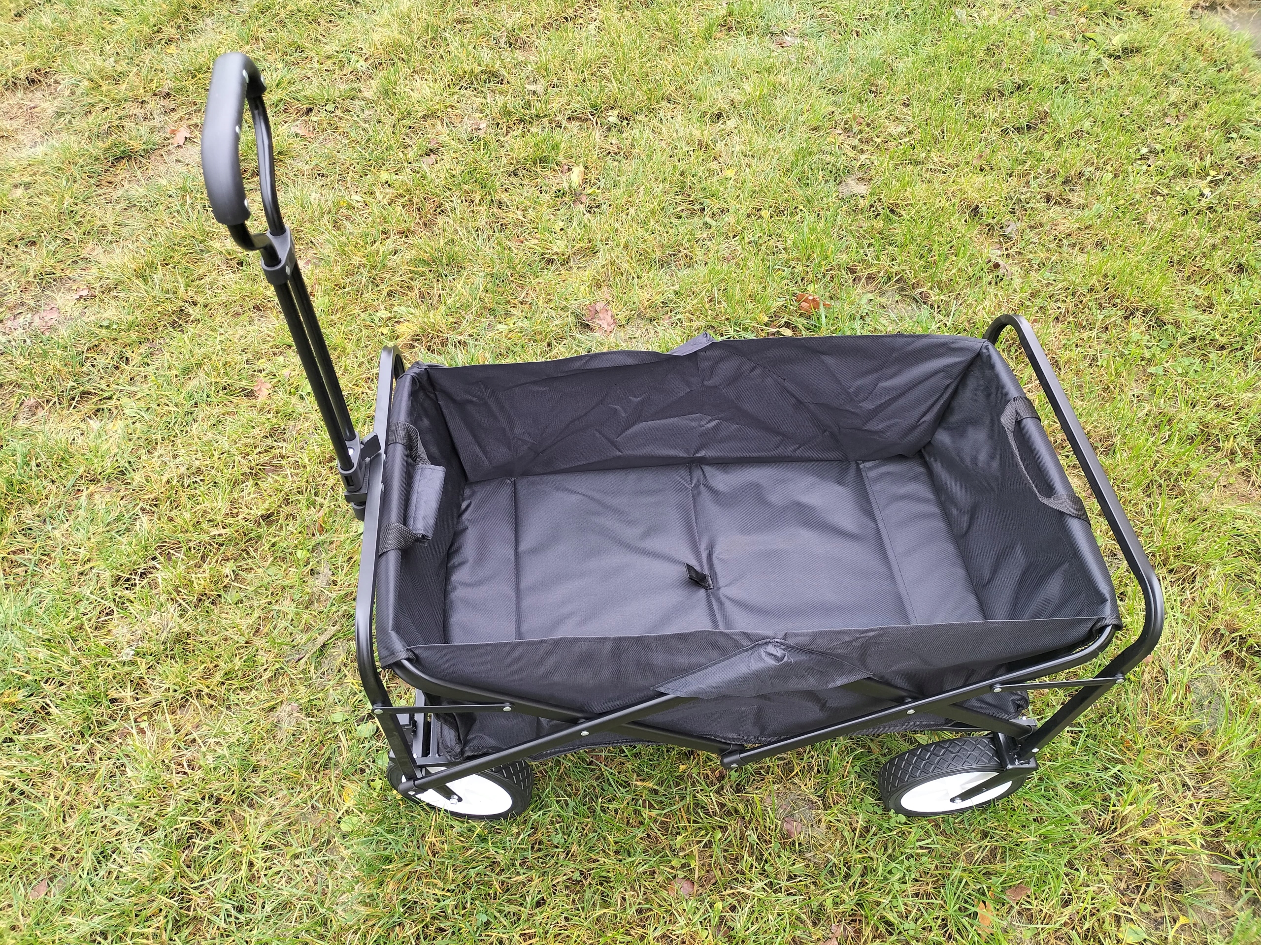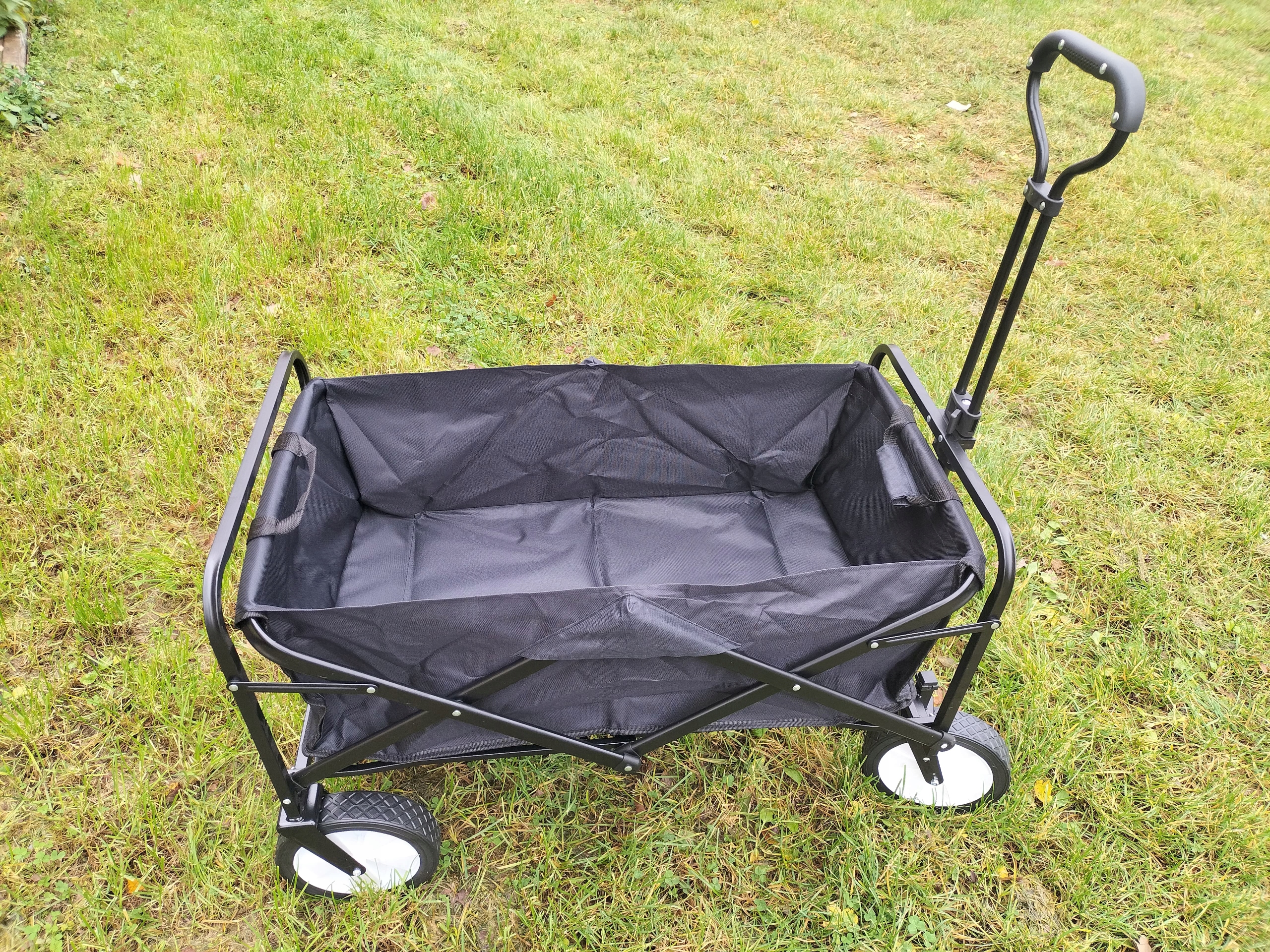 Коляска легко переносит до 80-90 кг груза. Благодаря большим пластиковым колесам он не боится песка и грязи. Его сборка занимает всего минуту, поэтому не возникает проблем с длительным складыванием или раскладыванием, а также с местом для хранения. Компактная и прочная.