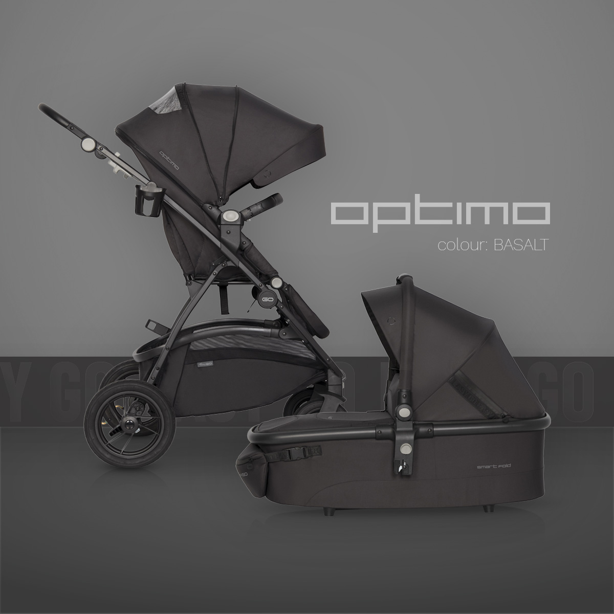 OPTIMO — это полноразмерная коляска с чрезвычайно привлекательным современным дизайном. Одним из ее многочисленных преимуществ является легкая алюминиевая рама, благодаря которой коляска отличается феноменальной маневренностью и надежностью при езде.