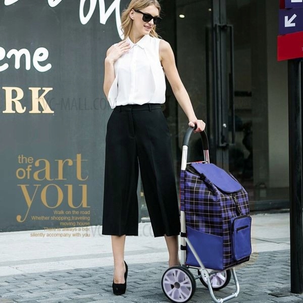 Тележка для покупок AluGo на двух шарикоподшипниковых колесах изготовлена из алюминия и поэтому идеально подходит для походов за покупками вместе с вами. Сумка водонепроницаемая, ее можно снимать для стирки. Имеет два кармана на молнии и два боковых кармана, в которых можно хранить, например, бутылку с водой или зонтик. Основное отделение закрывается на шнурок и клапан. Если у вас достаточно денег на покупки, на него можно загрузить до 40 кг товаров, а сумка вмещает до 50 л.