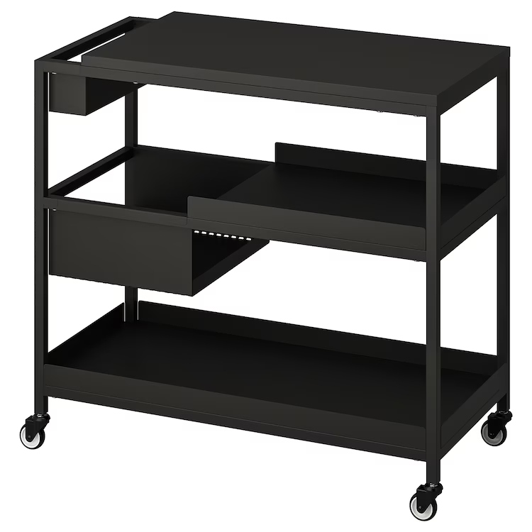 - Поместите корзину рядом с столом, чтобы насладиться большей рабочей поверхностью или иметь практическое место для хранения под рукой. Коляска имеет те же размеры, что и Trotten Desk Top, вытягивая тележку и используя ее где угодно.