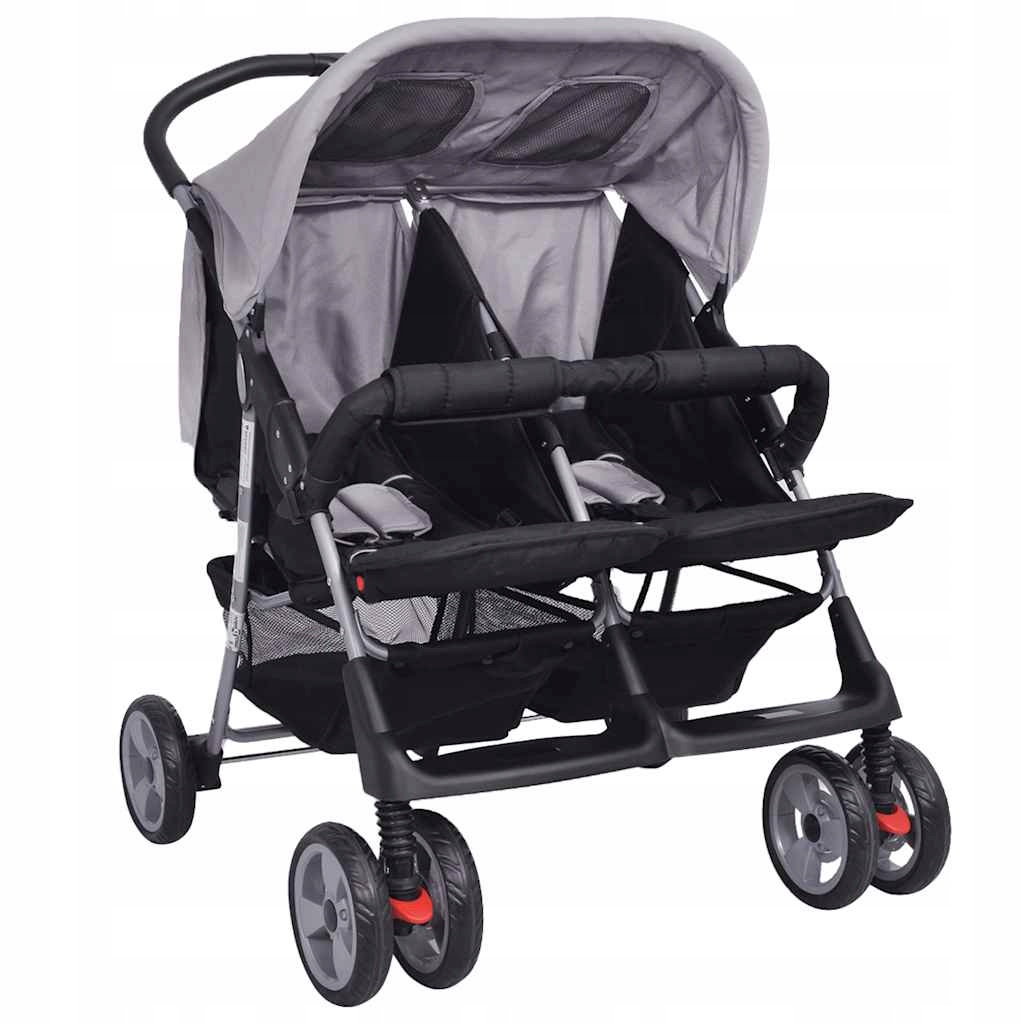 Коляска-близнюк дитяча сталева сіро-чорна розкладна прогулянкова