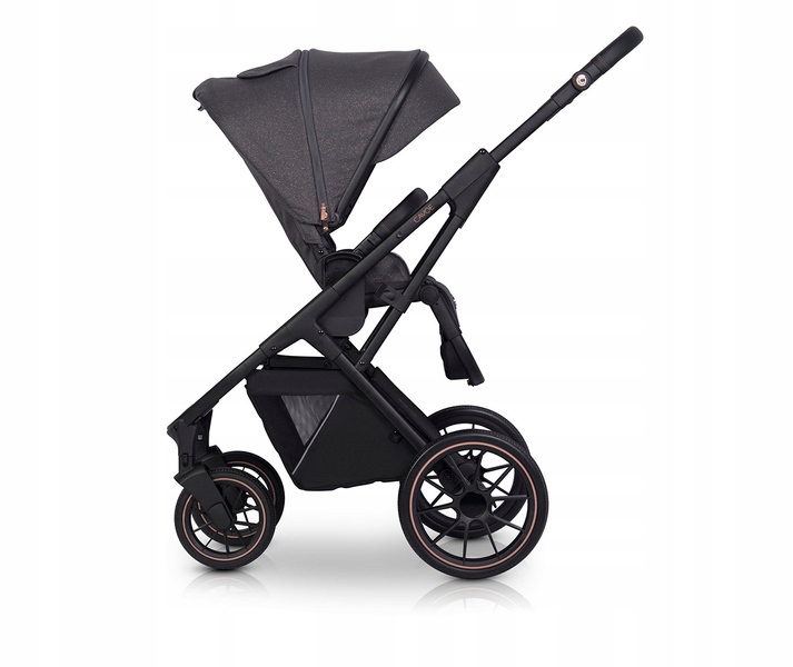 Все это дополняется модными аксессуарами цвета ROSE GOLD. Коляска AXO SHINE, как и популярная коллекция STYLE, имеет регулируемую по высоте направляющую. Эта функция позволяет комфортно управлять коляской как высоким, так и невысоким родителям. Кнопки регулировки украшены элегантными металлическими печатками CAVOE цвета РОЗОВОЕ ЗОЛОТО, благодаря чему эта чрезвычайно практичная функция также становится украшением коляски. Сиденье коляски AXO SHINE увеличено по сравнению с версией COMFORT.