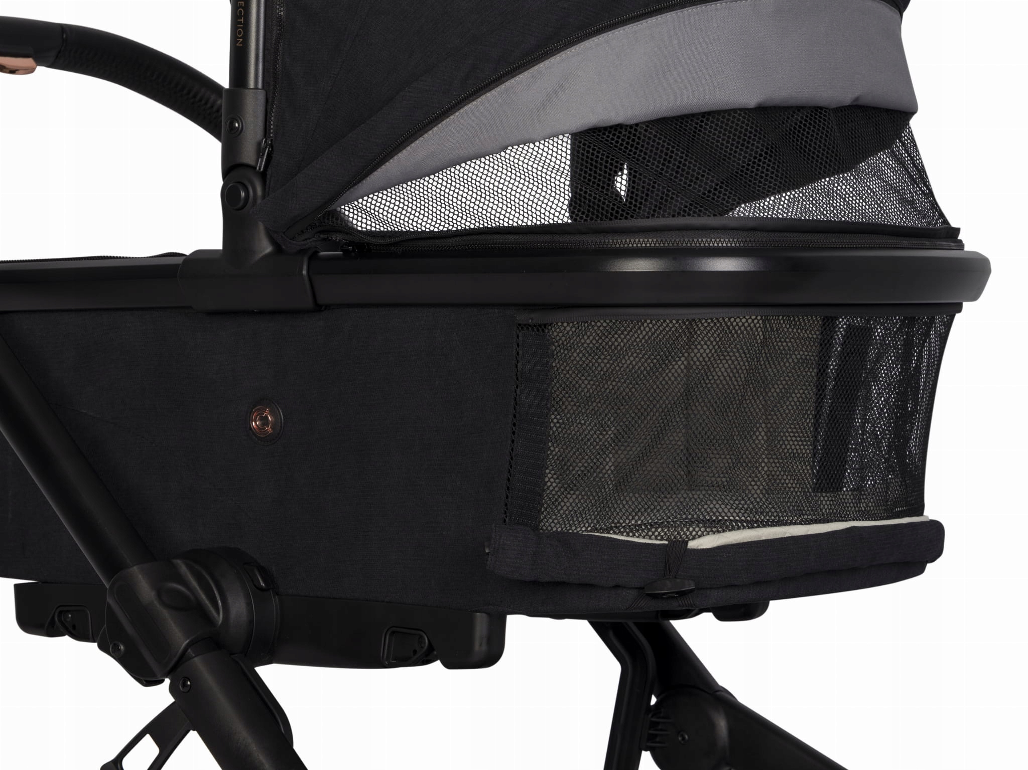 - гондола оснащена ручкой для переноски, солнцезащитным козырьком с дополнительной съемной секцией, функцией качания, пластиковыми ножками и вентиляционной панелью.