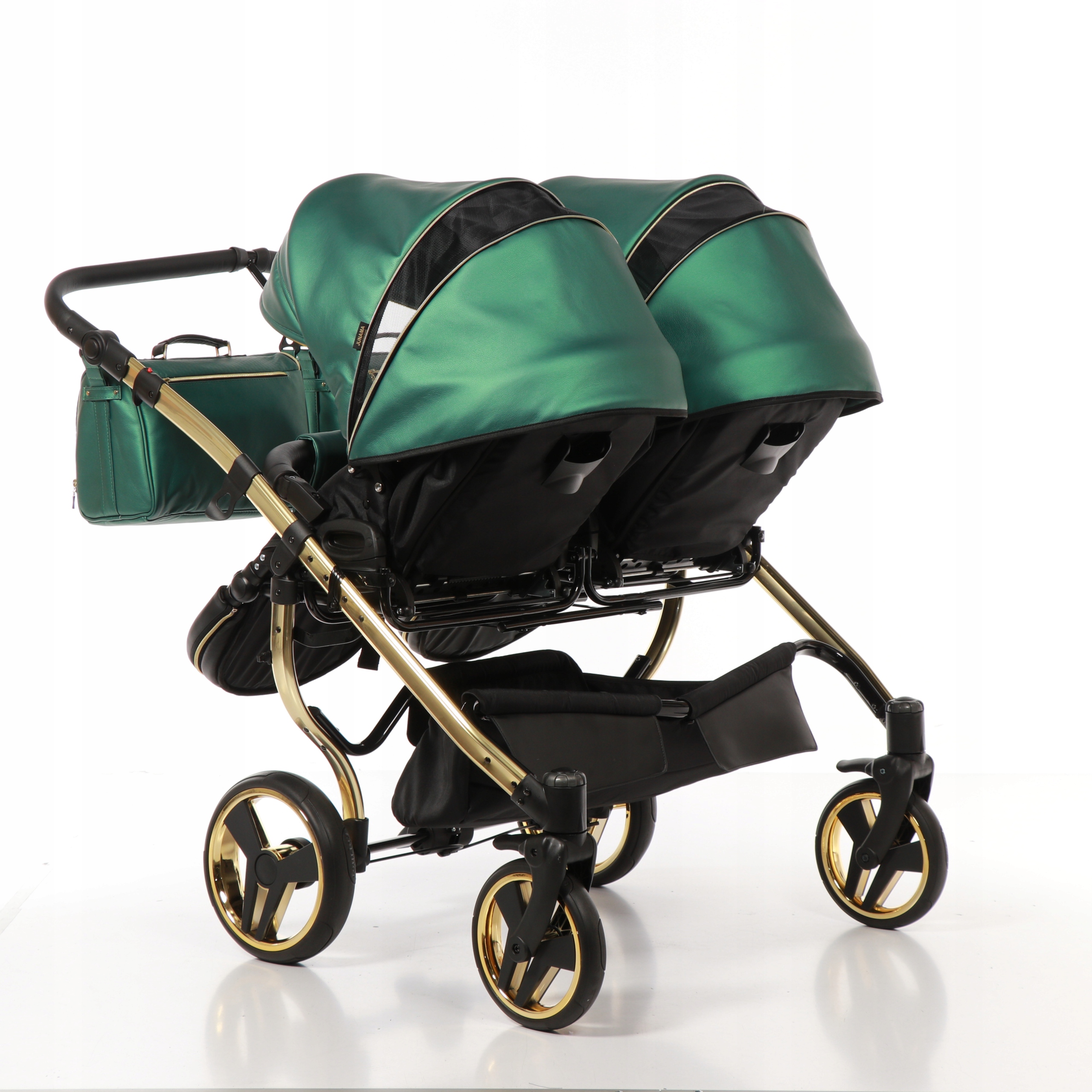 Модная, современная обивка еще и прочна и долговечна. Коляска Junama Fluo Line не потеряет своей привлекательности даже после частого использования. Дизайн этой модели продуман до мельчайших деталей. Его отличает не только привлекательный блестящий цвет, но и форма гондолы. В магазине BoboWózki вы можете заказать эту интригующую коляску для близнецов в универсальном, насыщенном зеленом и синем цветах.