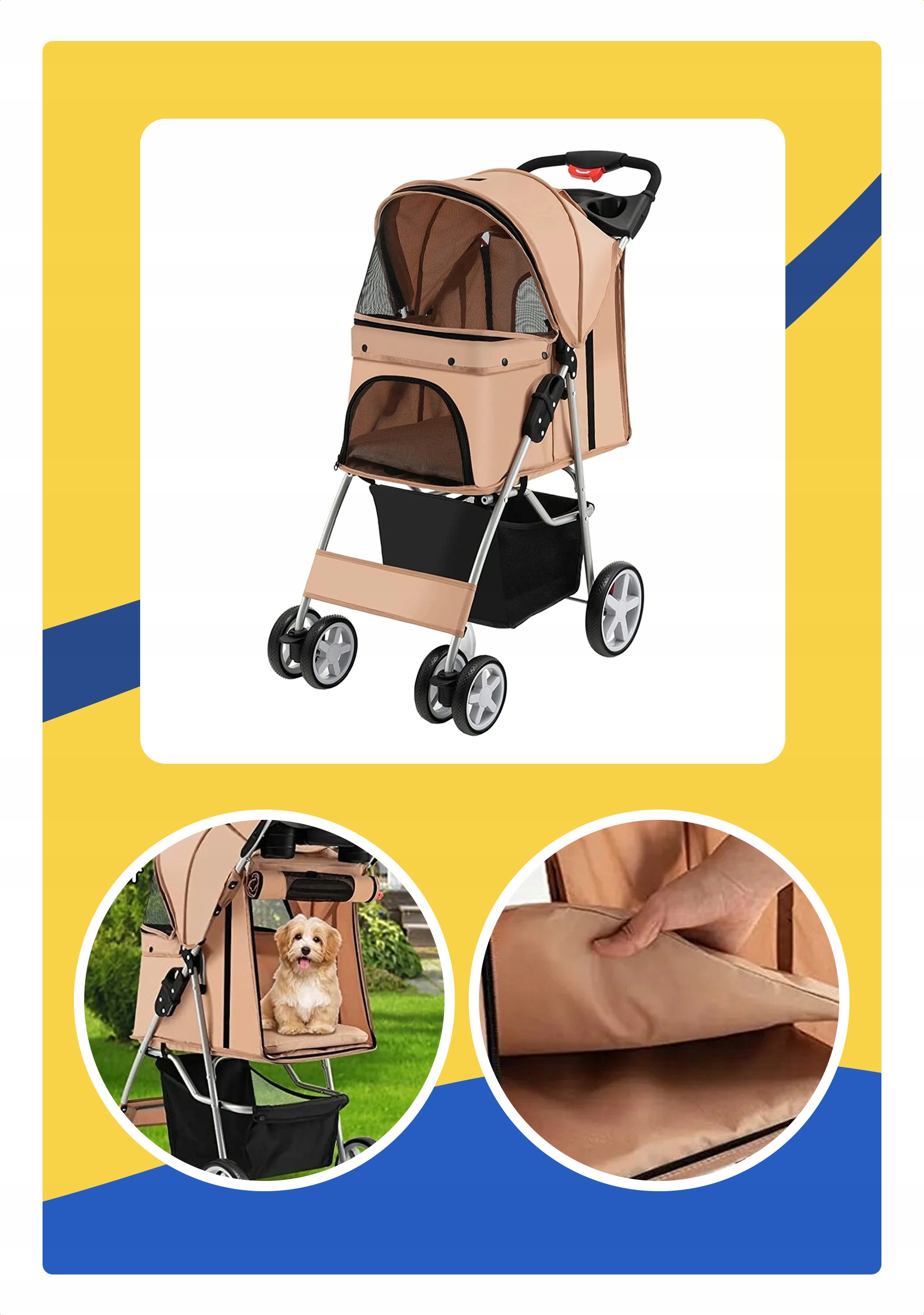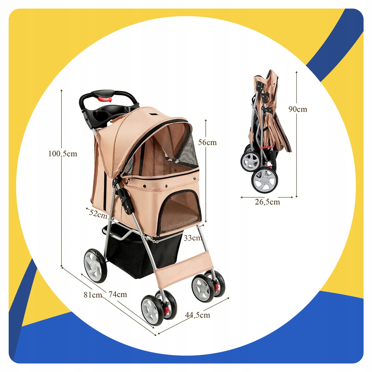 ПЕРЕНОСНАЯ ПРОГУЛЯЮЩАЯ КОЛЯСКА ДЛЯ СОБАК И КОШЕК ВЕСОМ ДО 15 КГ, СКЛАДНАЯ, БЕЖЕВАЯ РУЧКА