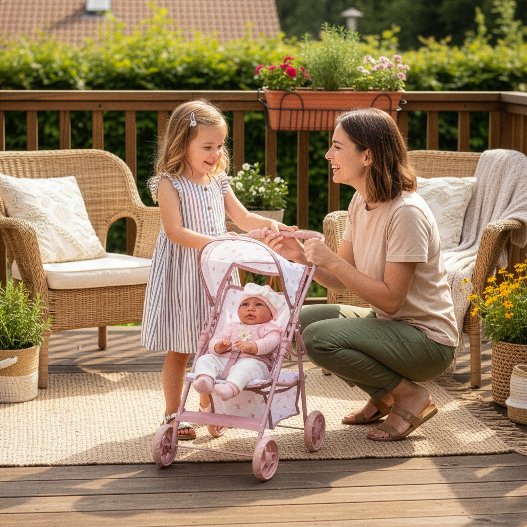 Добавляет реалистичности в игру и позволяет «маленькой маме» бережно защищать куклу от солнца или ветра во время прогулок, как в настоящей коляске.