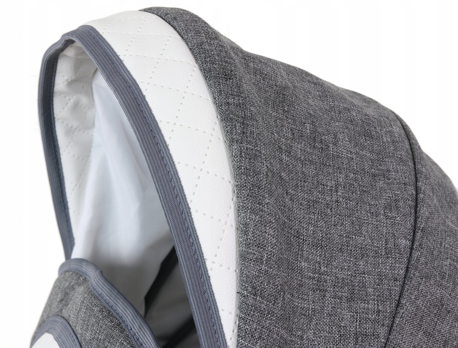 Коляска имеет уникальную отделку из ткани «Серый лен» или «Стеганый розовый».