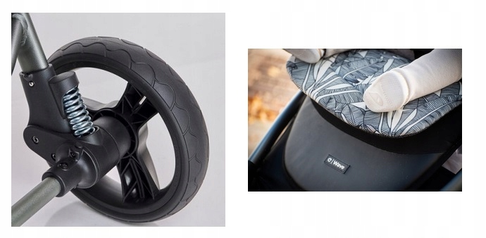 Коляски Волна 2022 оснащены необслуживаемыми колесами (гелевыми) с полной системой амортизации, а передние колеса полностью поворотные и блокируемые. Уникальным преимуществом является входящая в комплект очень вместительная корзина для аксессуаров и покупок.