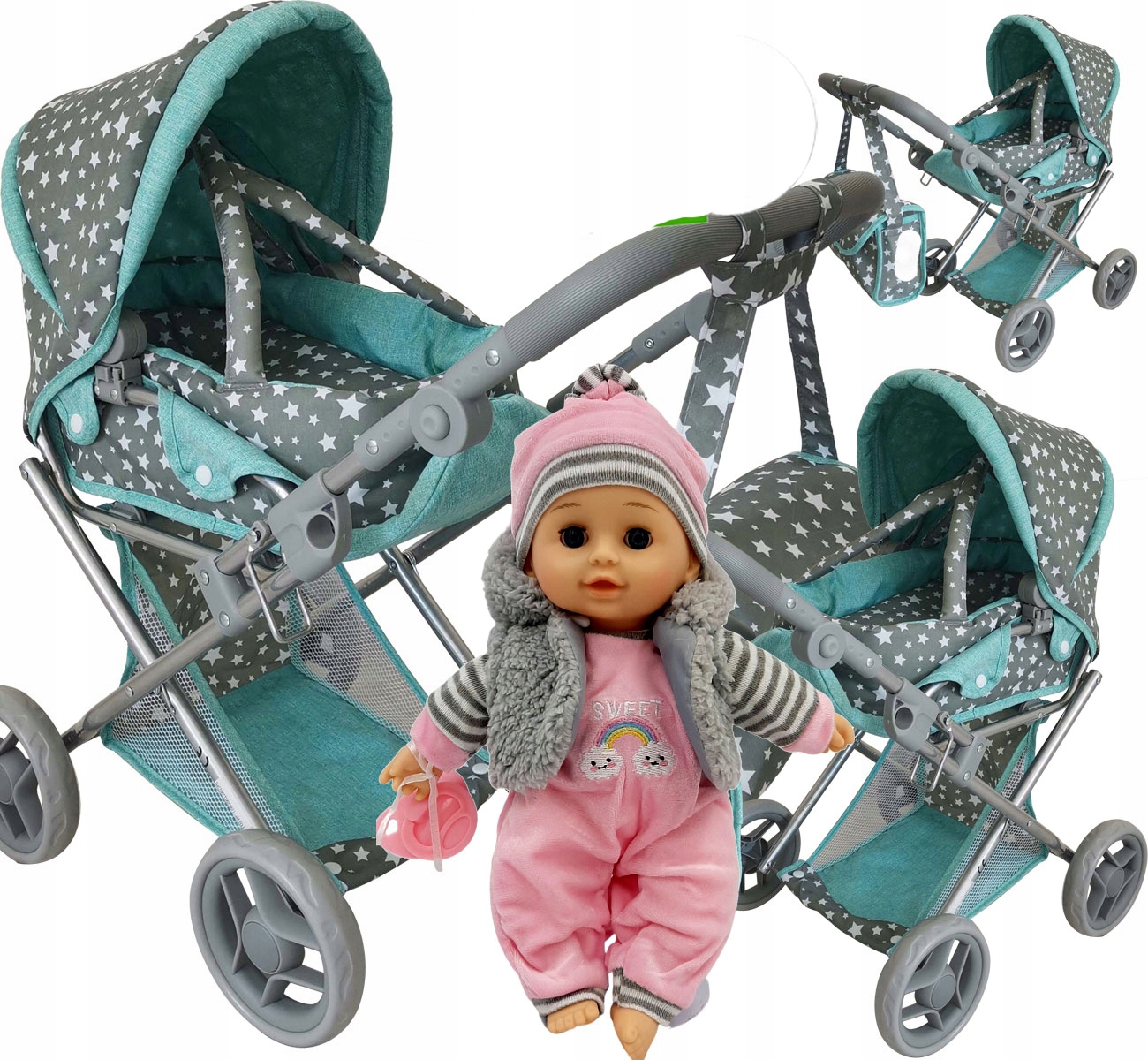 СУМКА ДЛЯ КУКОЛЬНОЙ КОЛЯСКИ ПОСТЕЛЬНЫЕ ПРИНАДЛЕЖНОСТИ + РЕБЕНОК ПОЕТ