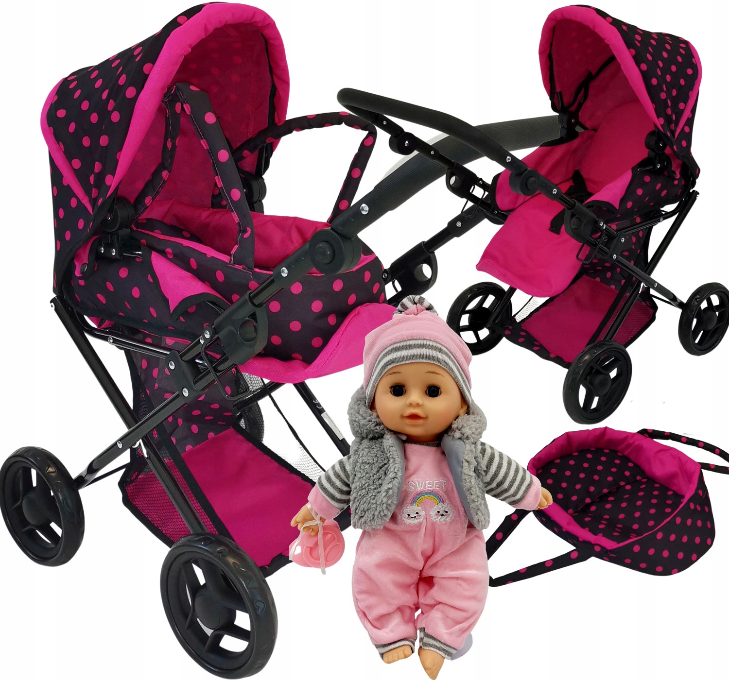 КОЛЯСКА ЛЯЛЬКА СУМКА ПОСТИЛЬ + ДИТИНА СВІВАЄ