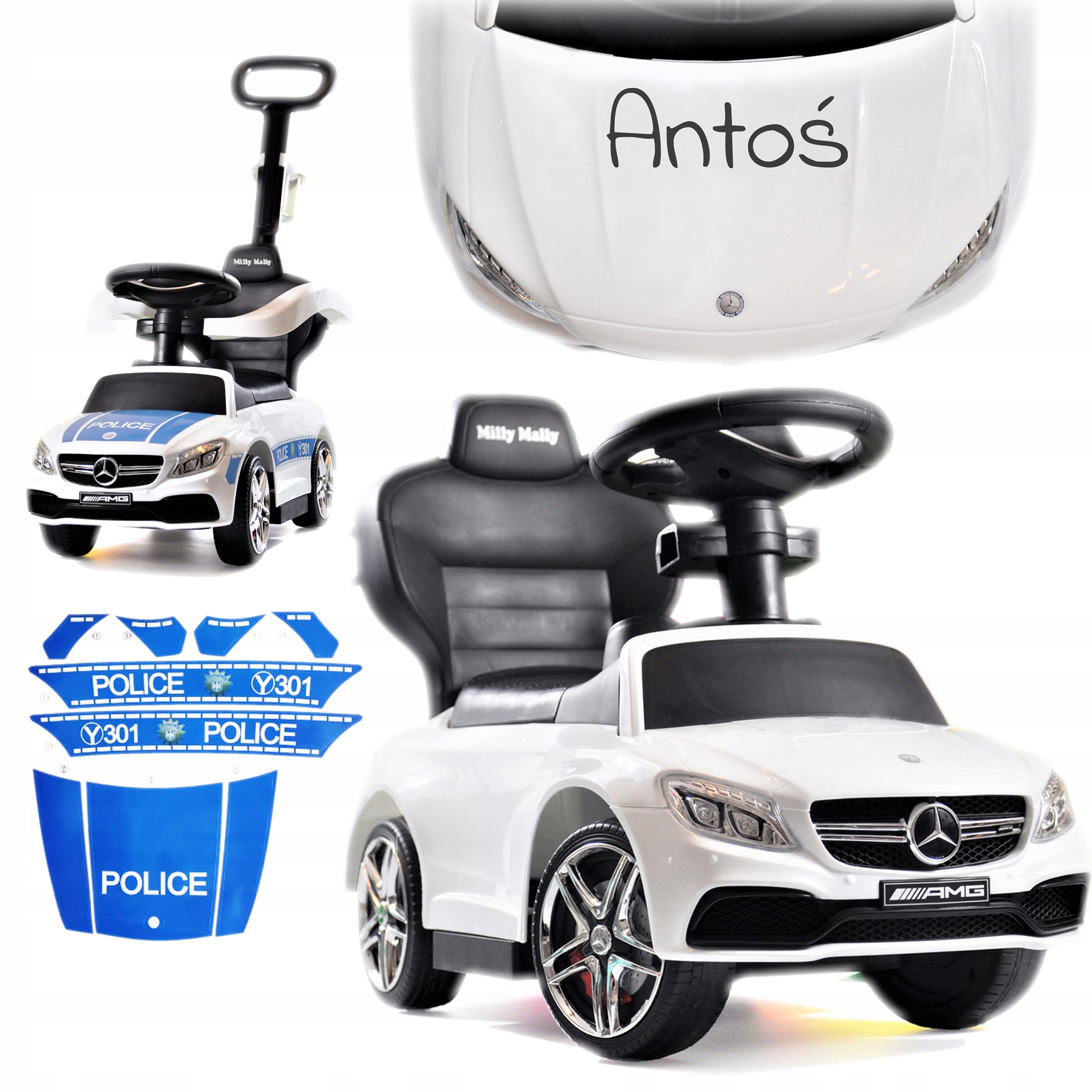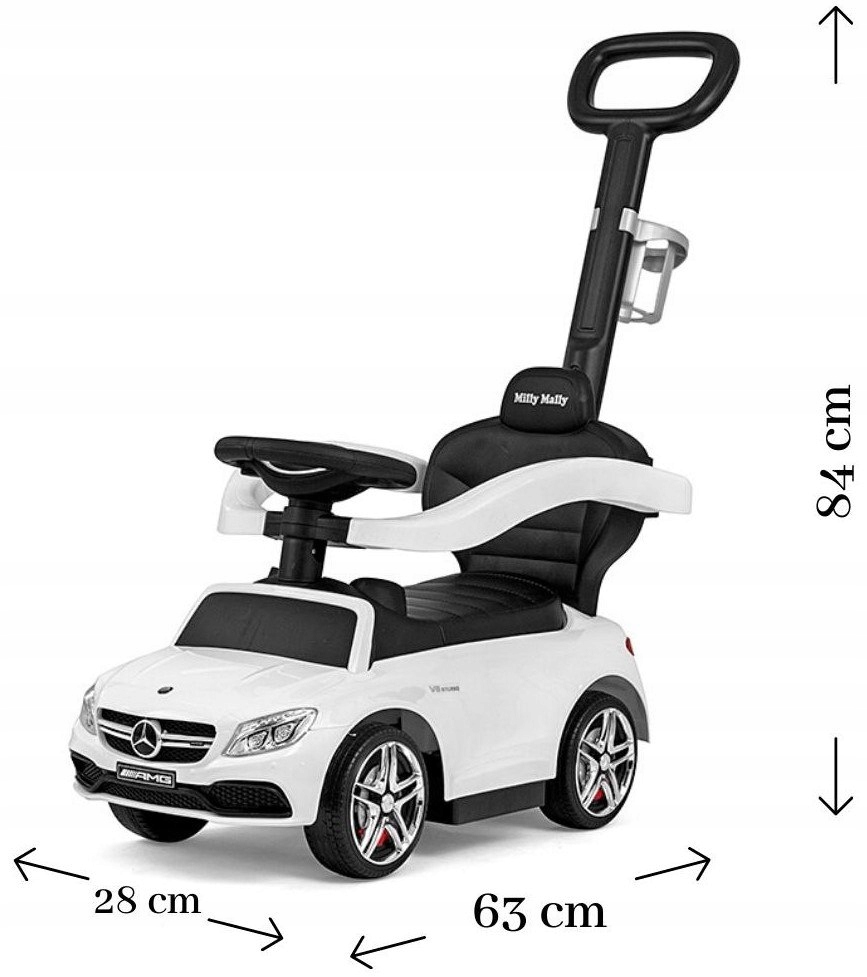 На нашем MERCEDES также имеется логотип Milly Mally - известного польского производителя детских товаров. Благодаря этому вы можете быть уверены, что игрушка полностью безопасна для детей в возрасте от 12 до 36 месяцев и соответствует европейским стандартам безопасности. p>