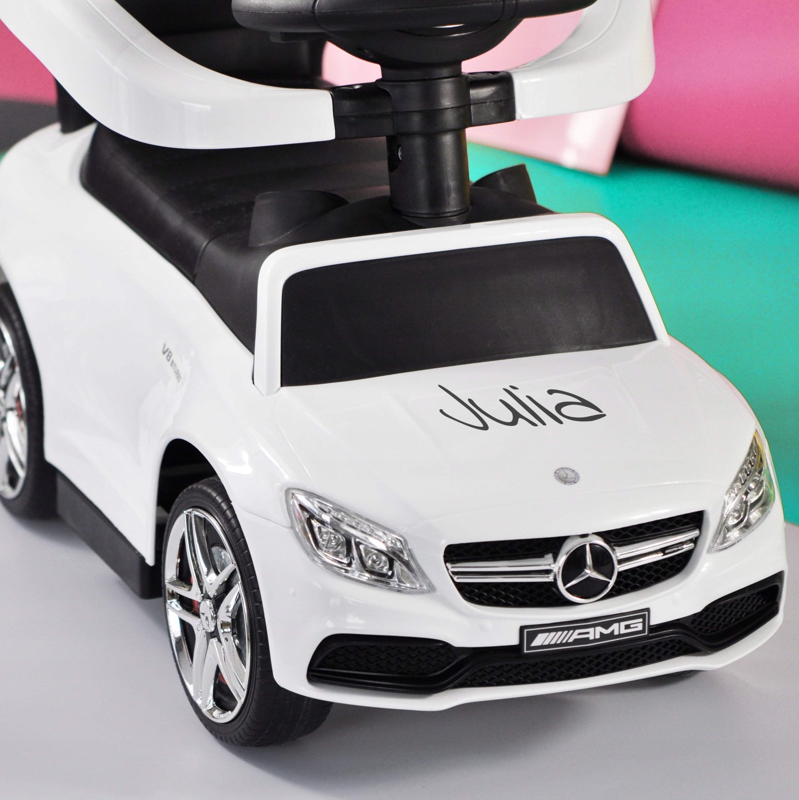Вождение MERCEDES больше не таит в себе никаких секретов и самое главное – это скорость и удобство посадки, Вы также можете снять защитную спинку. Тогда машина станет еще маневреннее и проще в использовании для малыша.