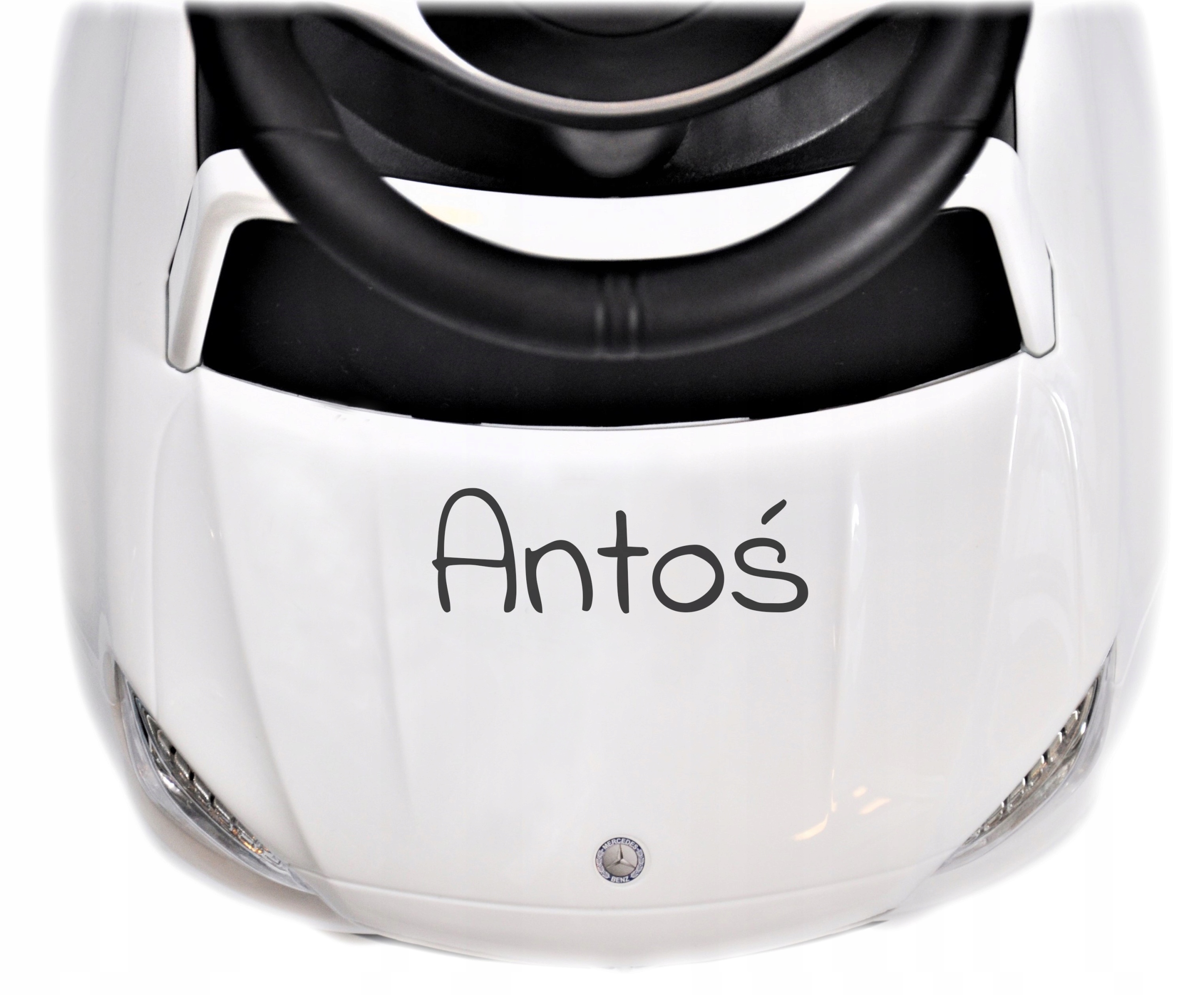 - Трехспицевый руль с логотипом Mercedes, оснащенный звуковым сигналом и веселыми мелодиями.