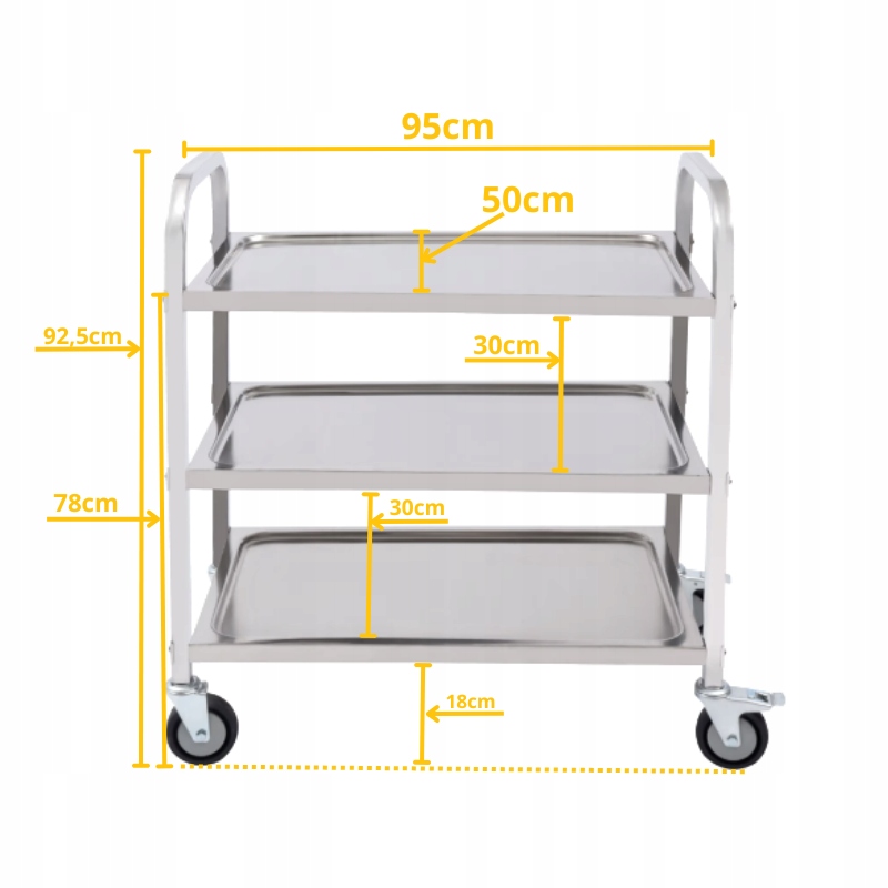 Три просторных полка с грузоподъемностью до 80 кг каждая позволяет эффективная передача большого количества судов, оборудования для общественного питания и других предметов. Максимальная грузоподъемность 240 кг означает, что она будет выполнять даже самые требовательные задачи.