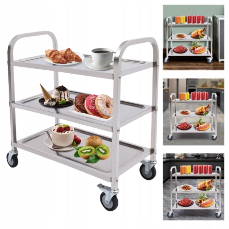 Троллейный официант 3 полка из нержавеющей стали 240 кг 95x50x93 см.