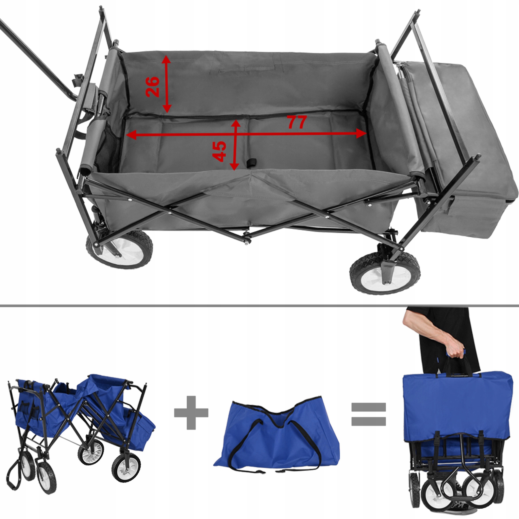 Эта складная красная транспортная тележка станет идеальным спутником в саду и во время активного отдыха. За несколько простых шагов коляску можно сложить и удобно транспортировать. Коляска оснащена сумкой, подставкой для напитков и большим грузовым отделением - таким образом, в коляске найдут свое место любые предметы!