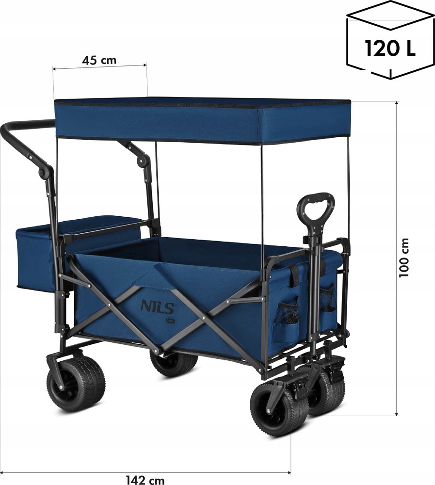 Складная походная коляска для пляжного транспорта Nils Camp NC2605 с навесом 120 л