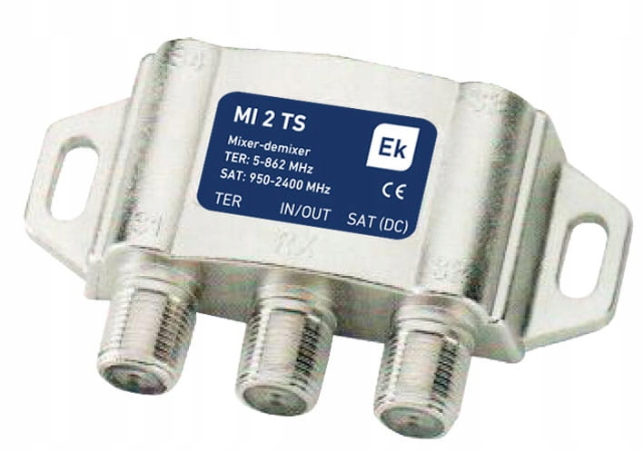 MI-2TS мультиплексор/демультиплексор, предназначенный для всех отдельных пользователей, которые хотят легко суммировать входные сигналы RTV (DAB/DVB-T) и SAT и отправлять их по коаксиальному кабелю в точку приема: САТ-тюнер и ТВ-приемник. Эти элементы, в зависимости от способа подключения в установке RTV/SAT, действуют как мультиплексоры (суммирование сигналов) или демультиплексоры (разделение сигналов). МИ-2ТСпо каналам SAT также передают напряжение питания для преобразователя SAT LNB.