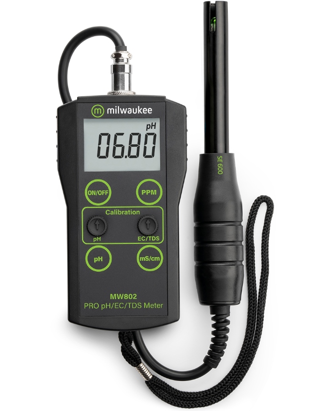 Комбинированный измеритель MW802 PRO включает датчик pH и EC во встроенном зонде SE600. Все датчики pH имеют ограниченный срок службы, а время отклика увеличивается с возрастом. EC-сенсоры более долговечны, но на них может повлиять накопление остатков. Оба требуют обслуживания. Правильное обслуживание датчика обеспечит быстрые и точные результаты в течение длительного времени. Поэтому обязательно заказывайте коды Milwaukee MA9015 и MA9016 при оформлении заказа! Это понадобится вам для очистки и подготовки вашего pH/EC-электрода перед использованием!