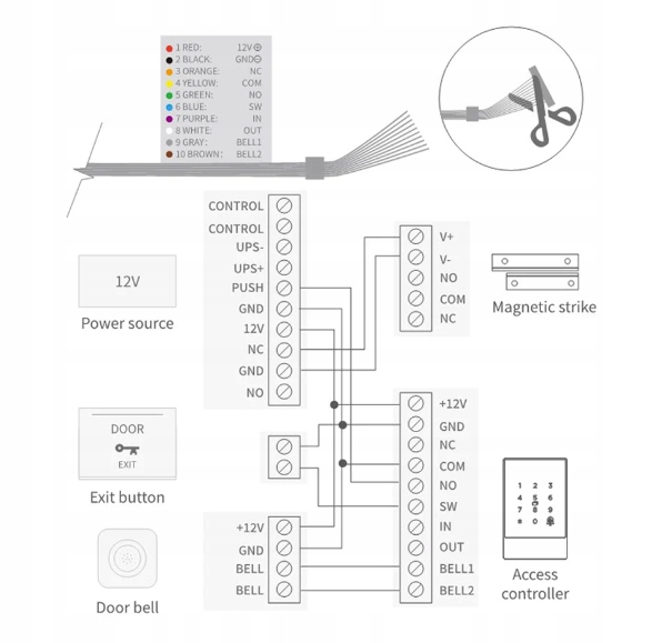 - Применение: Нормально разомкнутая цепь, используется для подключения к таким устройствам, как кнопки выхода или другие триггеры.