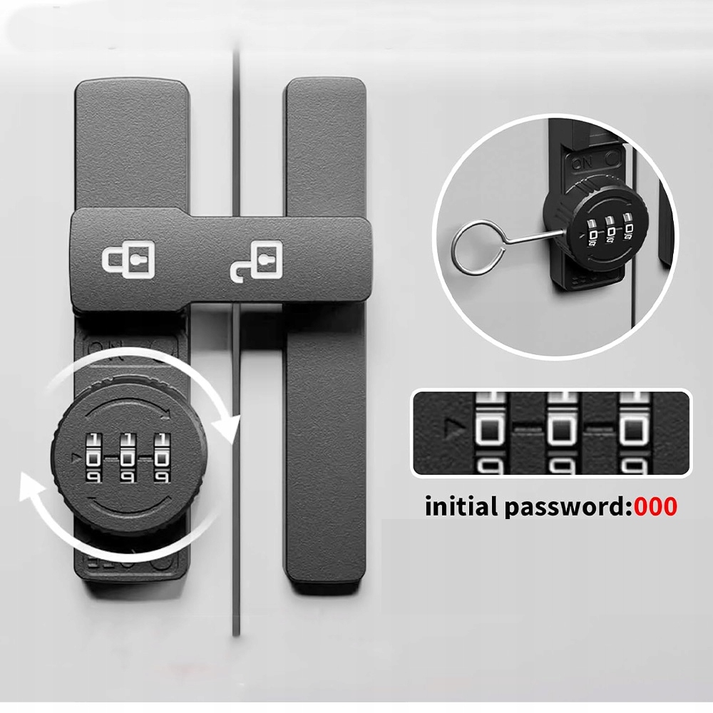 Защелка не требует ключа и имеет настройки по умолчанию. пароль 000. Вы можете вставить стальной штифт в замок с паролем, а затем установить цифры, чтобы изменить его на новый пароль, что повышает безопасность. (Примечание: при изменении пароля укажите исходный пароль)