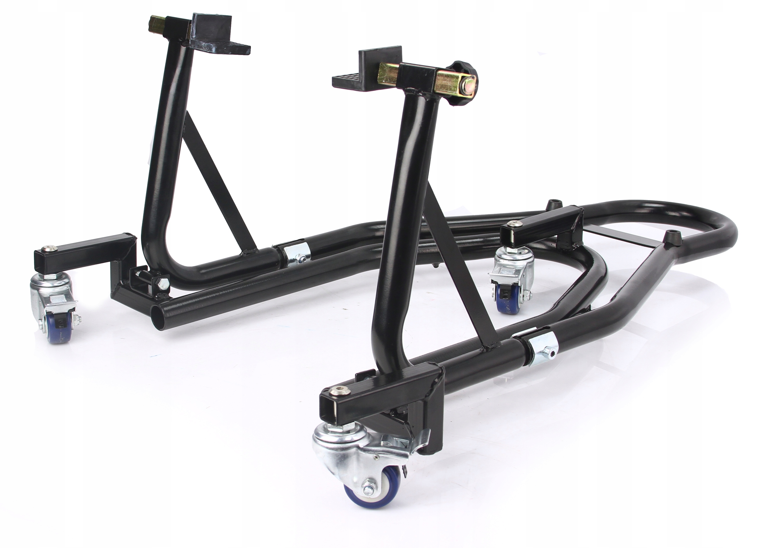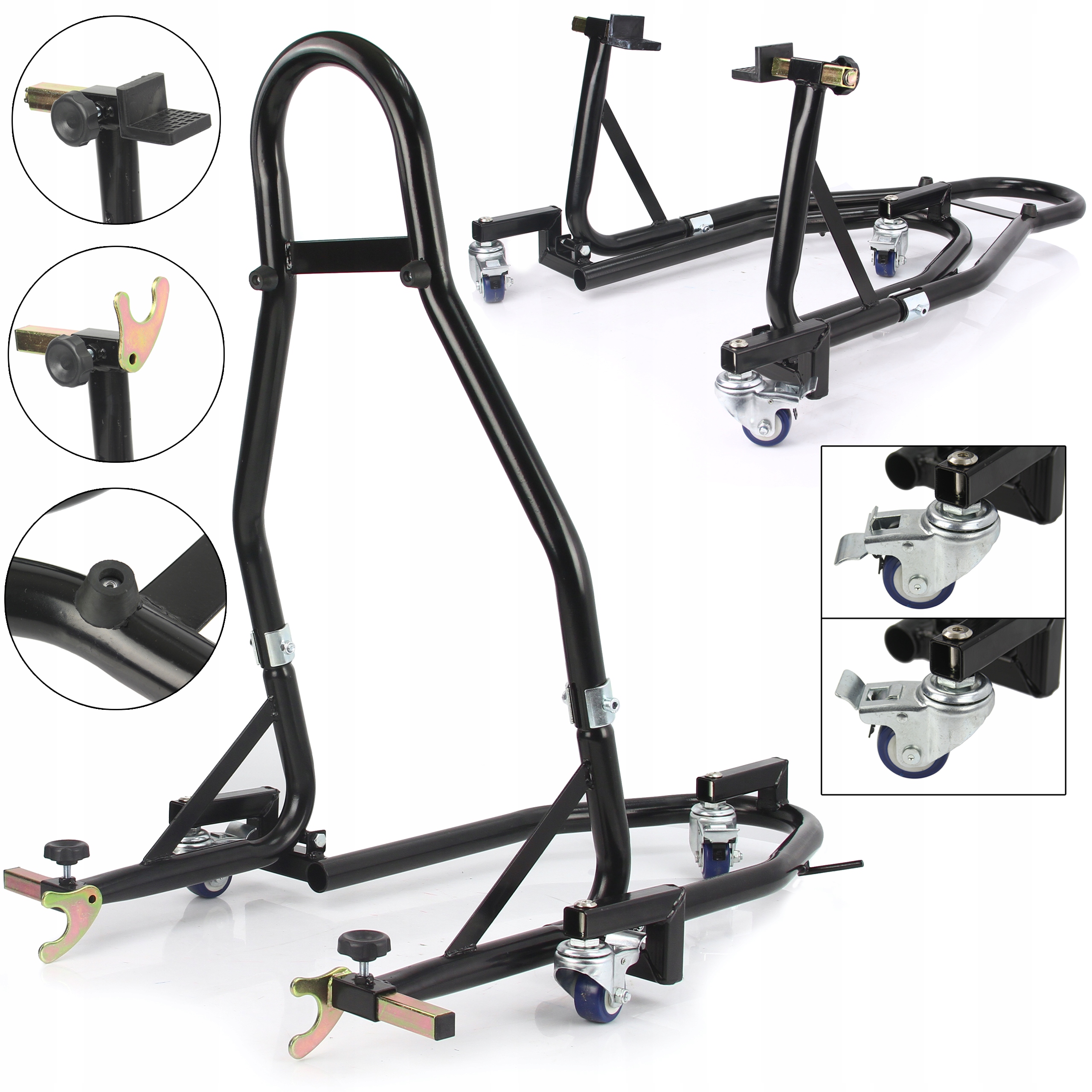✔️ Универсальная подставка для мотоцикла подходит для большинства мотоциклов, доступных на рынке. Подъемник оснащен опорными катками, что обеспечивает удобство транспортировки. Он изготовлен из прочного металла. Подставка легко удерживает мотоцикл. В комплект входят 2 адаптера, которые можно установить спереди или сзади, в зависимости от потребностей пользователя.