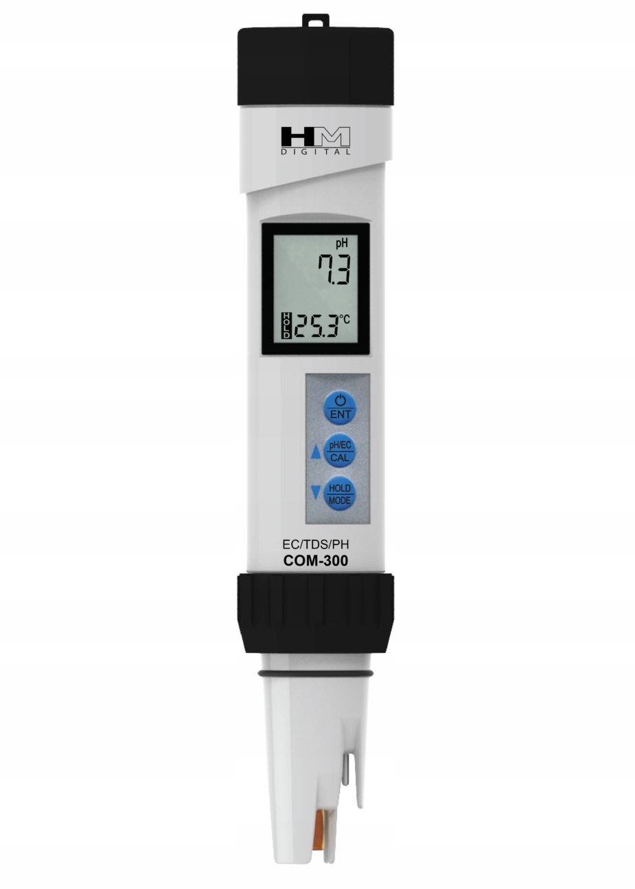 Combo com300 -метр ph/ec/tds/temp. Устройство предназначено для измерения общего количества всех веществ, растворенных в воде (ppm), проводимости (µS, MS), реакции жидкости (pH) и температуры (° C, ° F). Чтобы сохранить батарею, устройство автоматически выключается после 5 минут бездействия.
