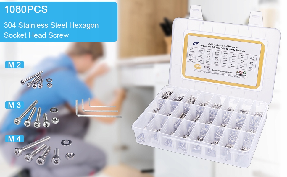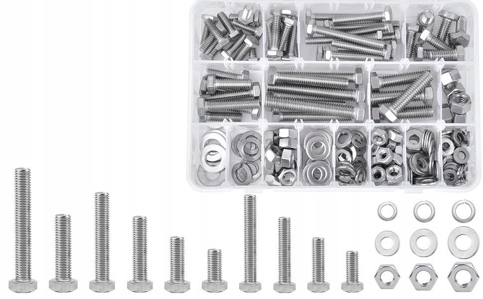 M4 x 6 мм/10 мм/14 мм/18 мм/20 мм/30 мм (по 20 штук каждого размера) с соответствующим количеством шайб и гаек, всего 1080 штук для всех ваших потребностей.