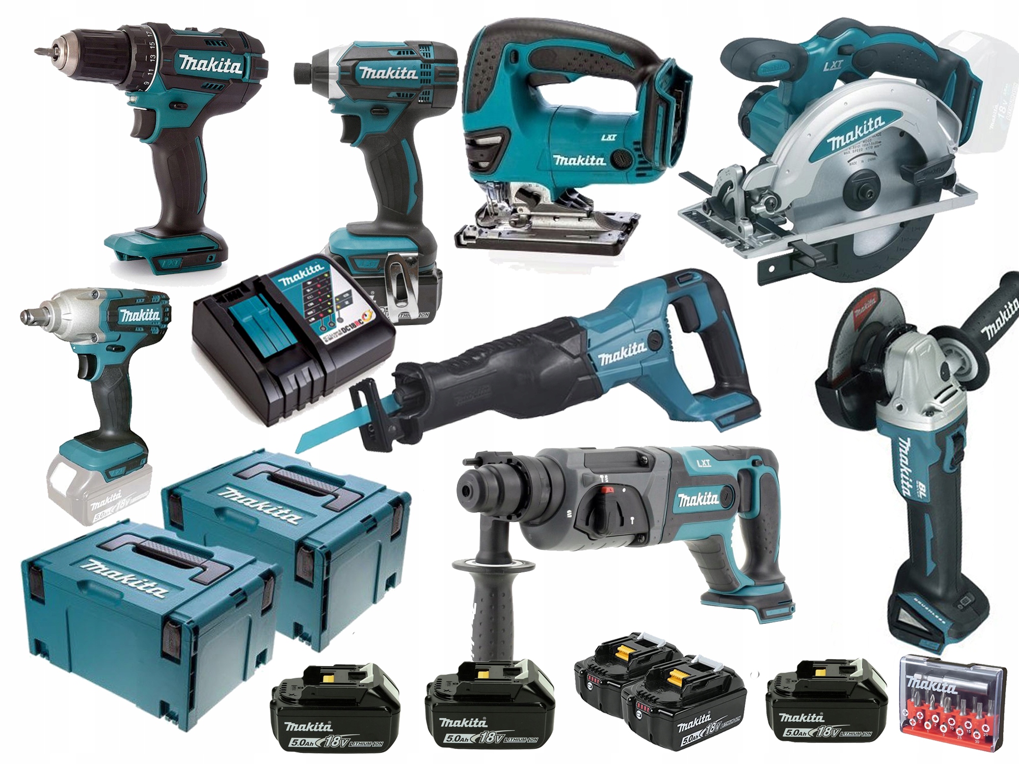 КОМБО-НАБОР LI-LON 18 В DTD152+DDF482 5*5,0 Ач MACPAK M DLX2127TJ1 + DGA504ZJ + DHR241+DTW190+DSS610+DJR186+DJV180