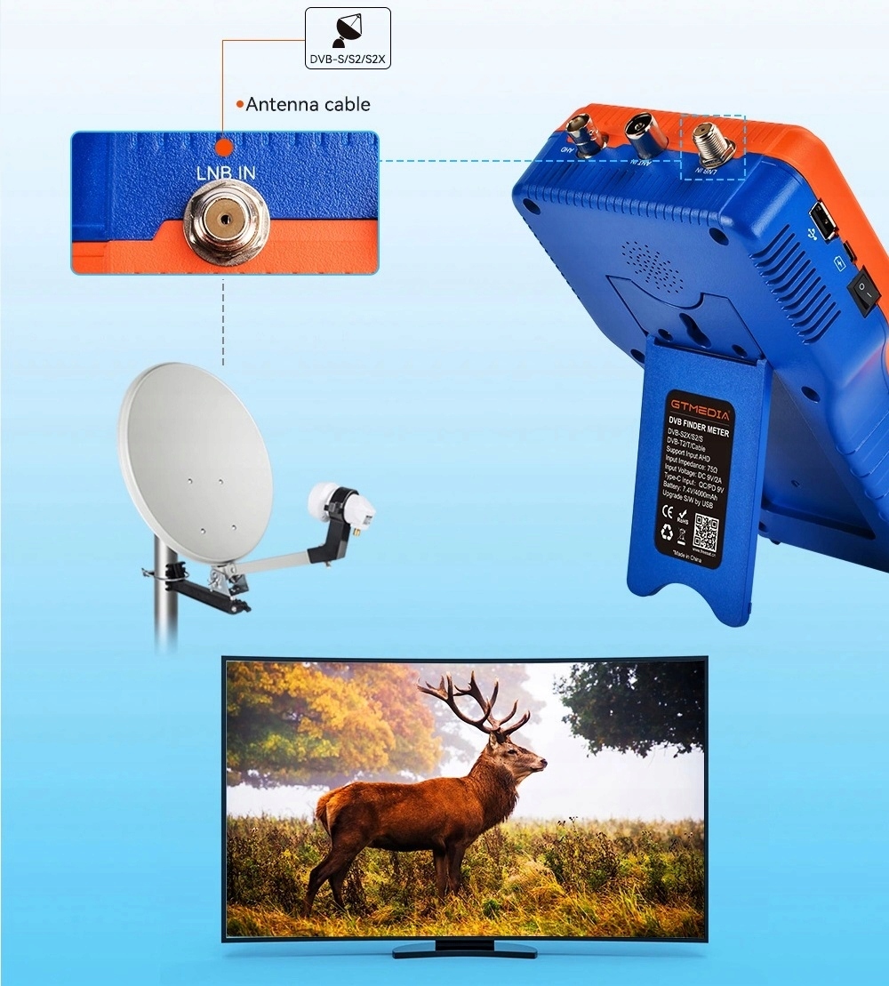 Измеритель предоставляет все необходимые функции для измерений в спутниковом телевидении, наземных антенных и сигнальных установках. кабельное телевидение.