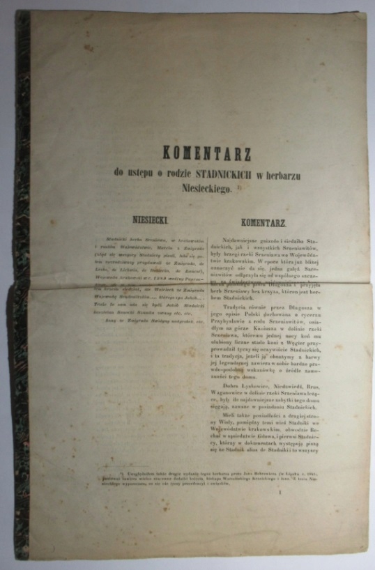 Komentarz... o rodzie... Stadniccy, Szreniawa, Herbarz Niesieckiego, 1861