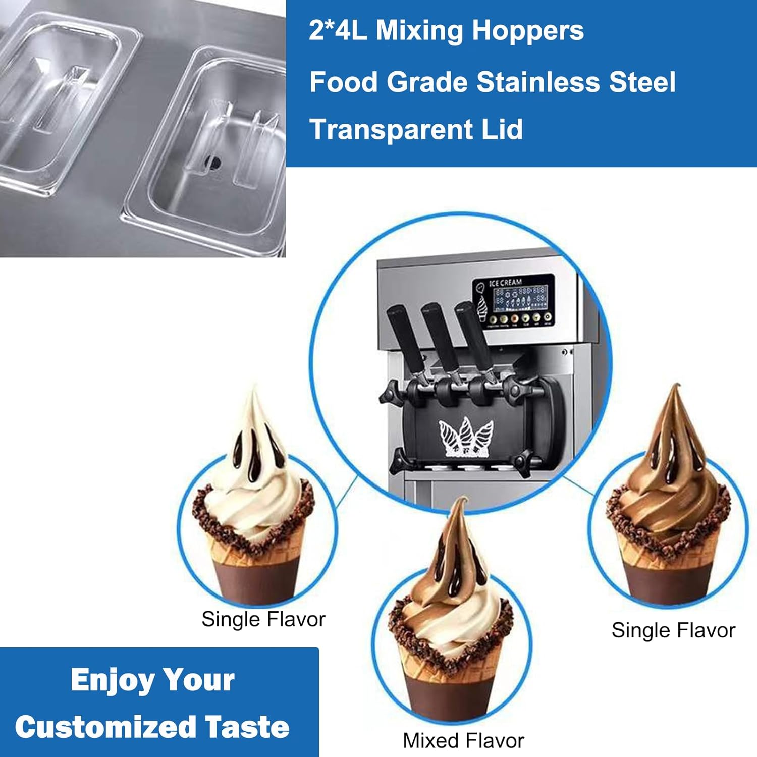 【Предварительное охлаждение и свежесть】 Функция свежего хранения с пенопластовым слоем внутри конструкции может сохранить воронку при более низкой температуре при создании мороженого, обеспечивая свежесть ингредиентов на следующий день и поддерживать вкус мороженого.