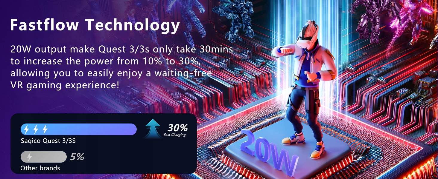 💎【 Совместимый с Meta Quest 3/Quest 3S】 --- Батарея для 3/3 FINK Quest был создан для совместимости с оригинальной мощностью зарядки 18 Вт, что потребовало всего около 2,5 часов, чтобы полностью зарядить ваш Meta Quest 3/Quest 3S. Более того, сама батарея может быть заряжена примерно за 2,5 часа, используя питание 18-века.