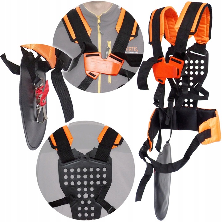 Привязь Strimmer представляет собой комплект ремней безопасности, соединенных прочными пряжками, образующих удобную подвеску-вешалку для электроинструмента.