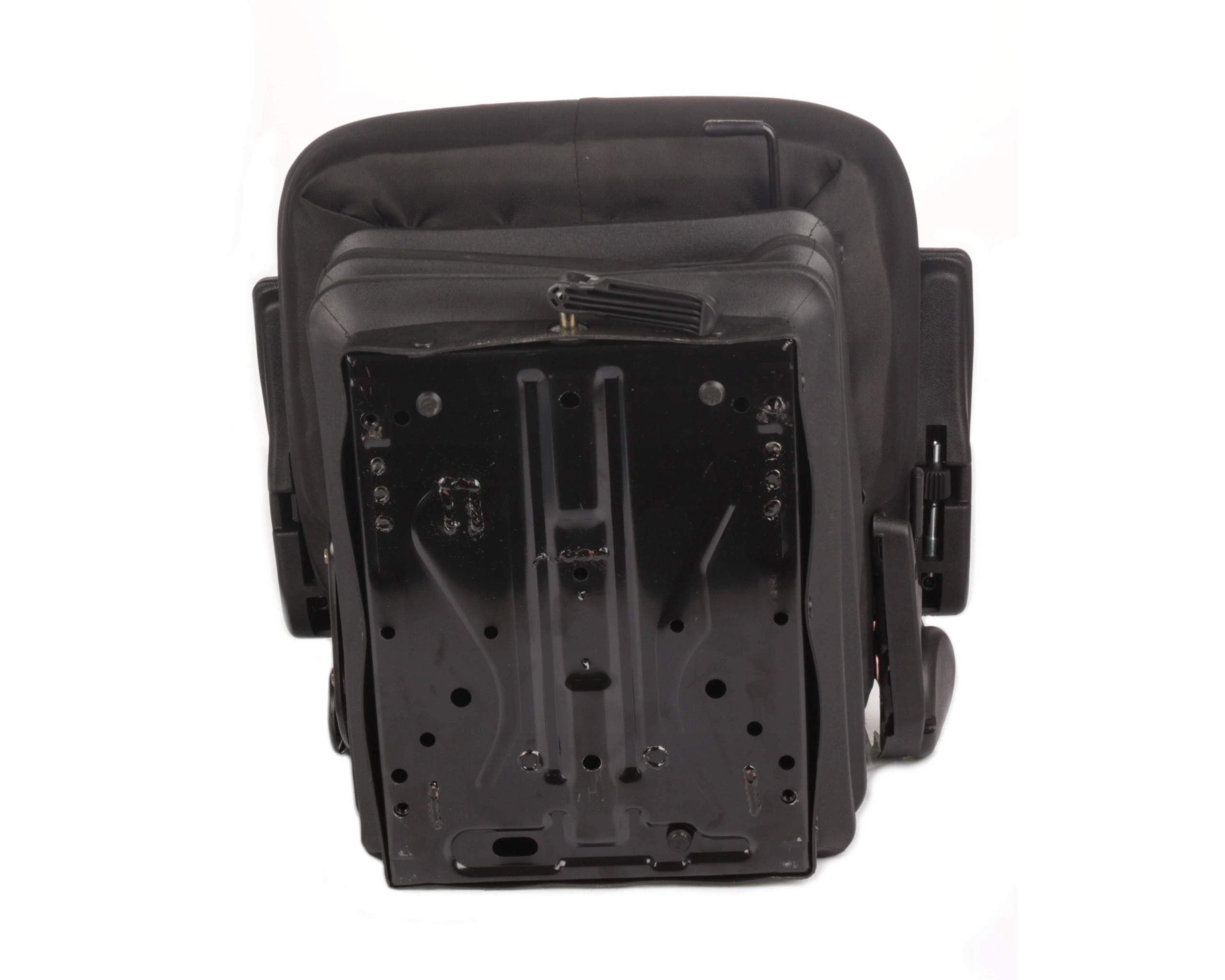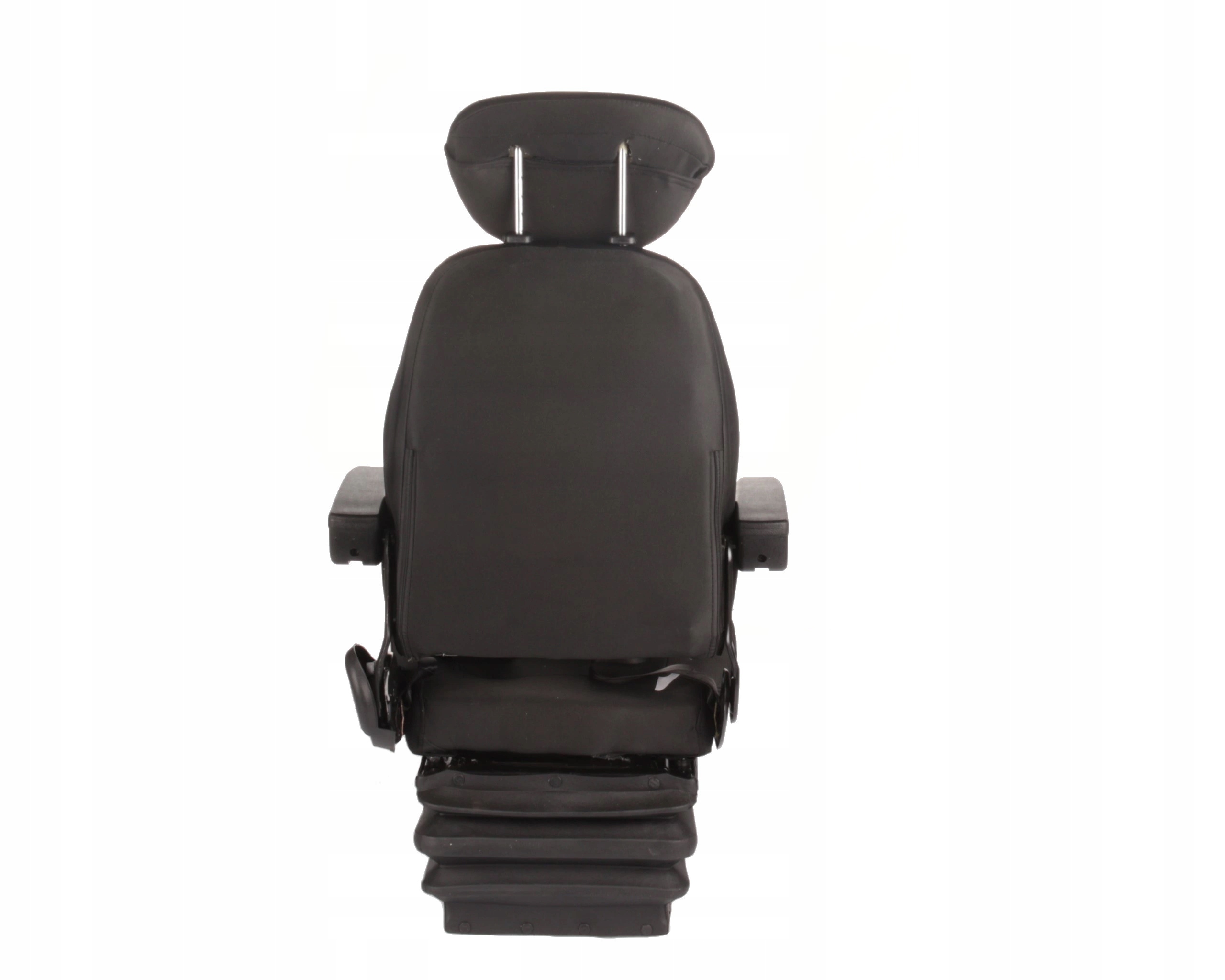 Комфортное сиденье для трактора, вилочного погрузчика, экскаватора, погрузчика с механической амортизацией, подлокотниками и регулируемым подголовником. Сиденье особенно подходит для тракторов, сельскохозяйственной техники, вилочных погрузчиков и строительной техники. Благодаря рычагу мы можем регулировать сиденье вперед и назад. Обивка выполнена из черного эстетичного материала, прочного и легко чистящегося, а сиденье и спинка — из толстой и удобной губки. Дополнительным преимуществом являются приподнятые подлокотники с возможностью регулировки угла наклона, повышающие комфорт оператора. Благодаря рычагу, расположенному сбоку кресла, мы можем легко изменить угол наклона спинки по отношению к сиденью. Сиденье оснащено автоматически убирающимся поясным ремнем безопасности и регулируемым подголовником.